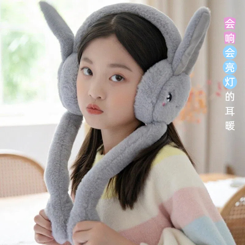 儿童保暖耳罩兔耳朵会动女学生可爱耳套冬季耳包护耳朵罩冬天耳帽