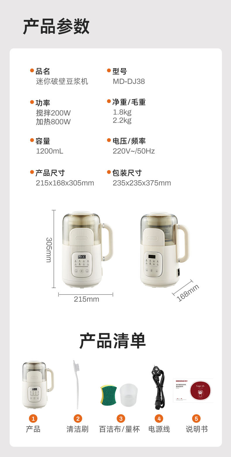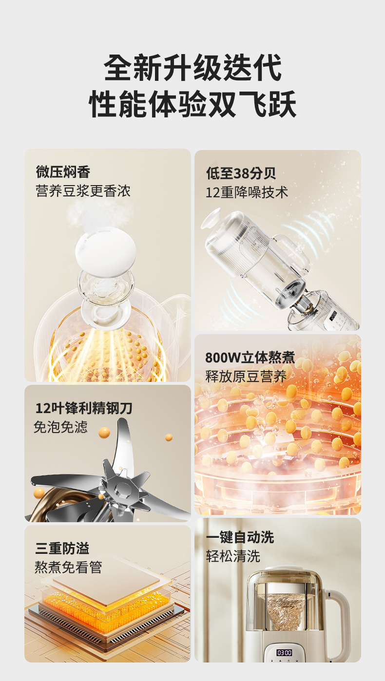 摩動柔音破壁機家庭用加熱多機能小型ジュース乳児補助食全自動料理豆乳製造機