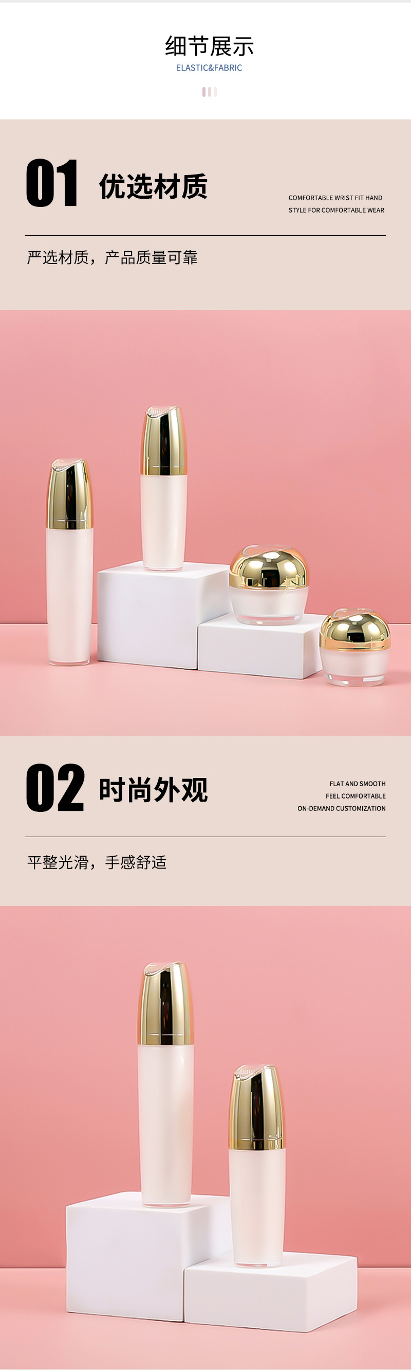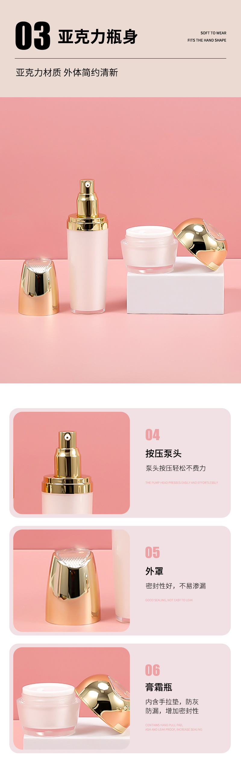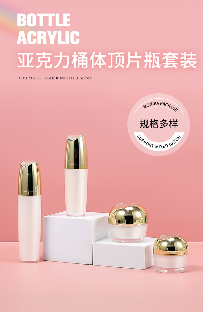 15/30/50gクリームボトル、30/60/100ml容器トップピース付きアクリルローションボトルセットの卸売供給