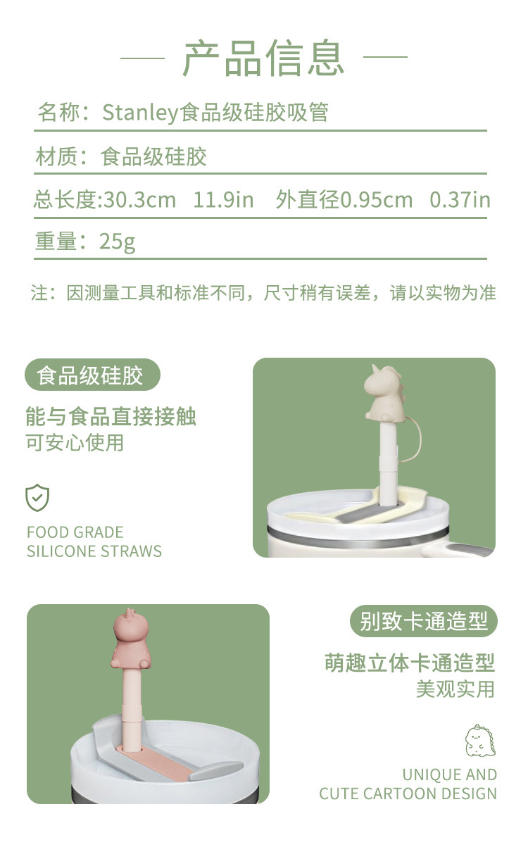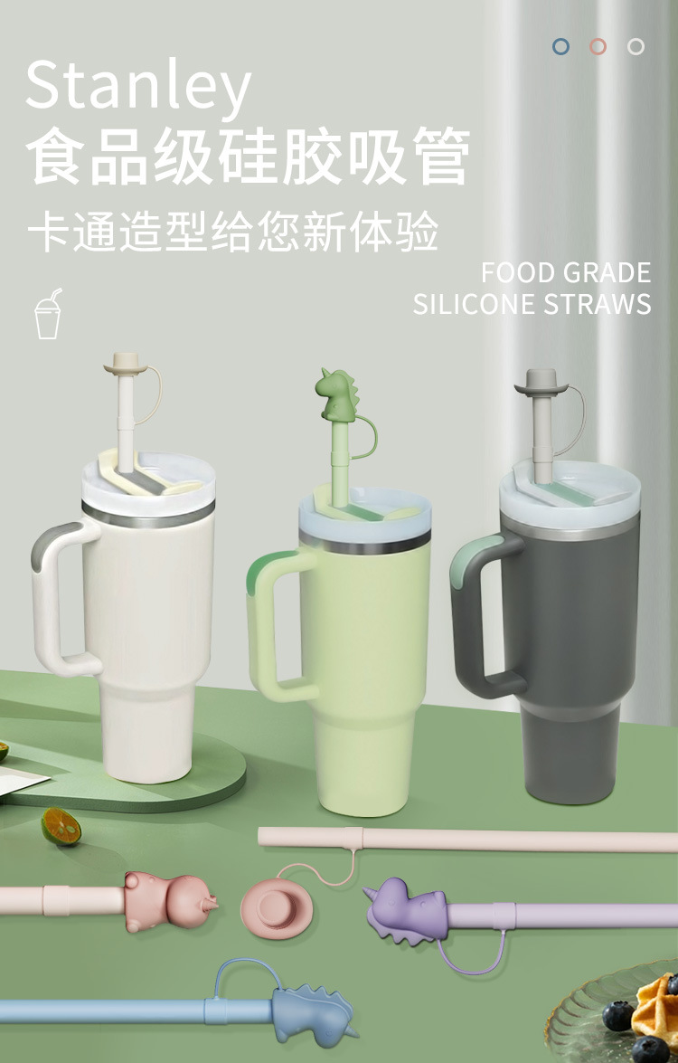 Stanley水杯硅胶吸管恐龙帽子吸管塞防尘史丹利水杯卡通硅胶吸管