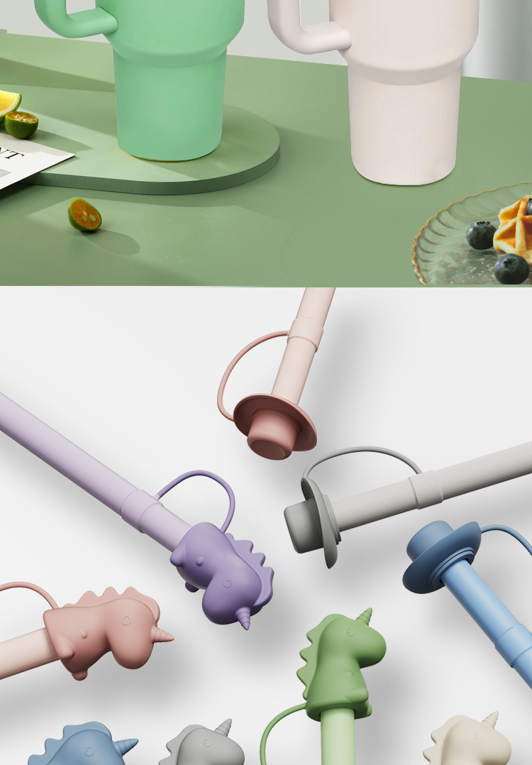 スタンレーウォーターカップシリコンストロー恐竜帽子ストロープラグ防塵スタンレーウォーターカップ漫画シリコンストロー