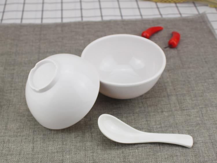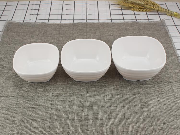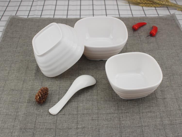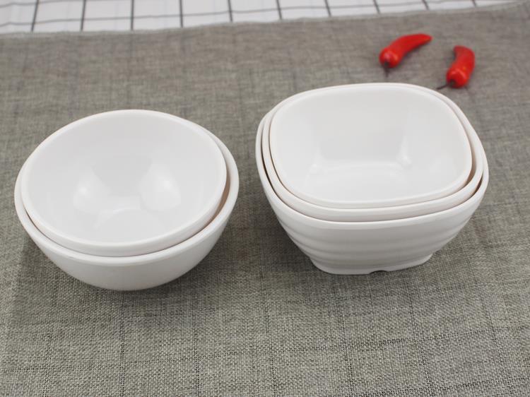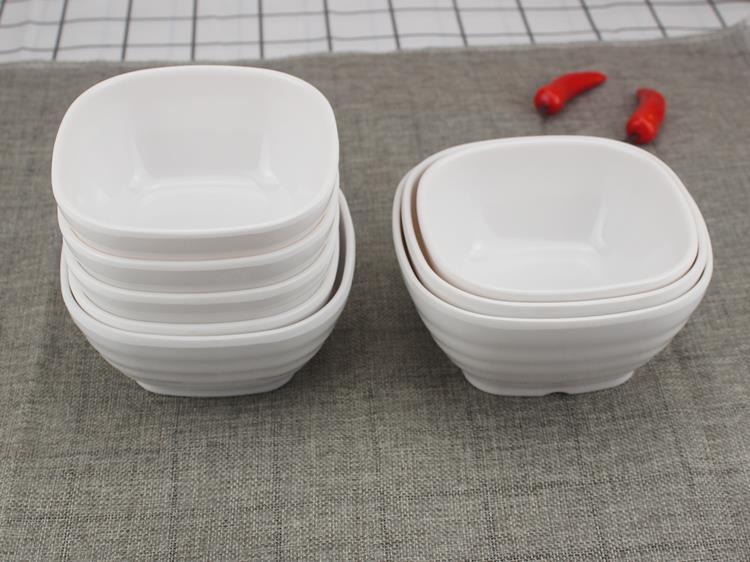 メラミンの白いプラスチックの小さい碗のスープの碗のご飯の碗のホテルのレストランの火鍋の店は磁器の食器をまねて材料の四方の碗をつけます