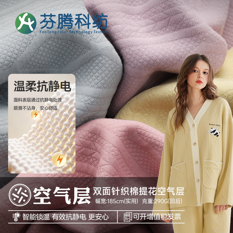 芬騰科紡ジャカード空気層生地両面ニット綿布秋冬子供服パジャマ綿布