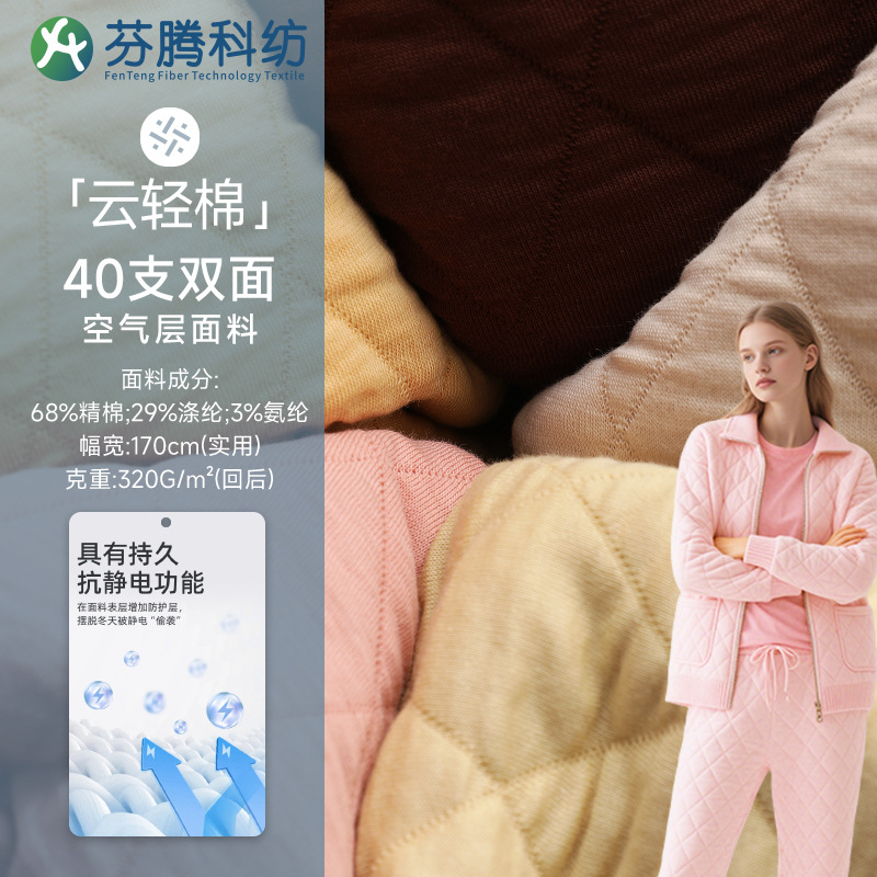 フェントンコウ繊維冬キルティング生地帯電防止ジャカード空気層生地三層キルティング子供服パジャマ生地