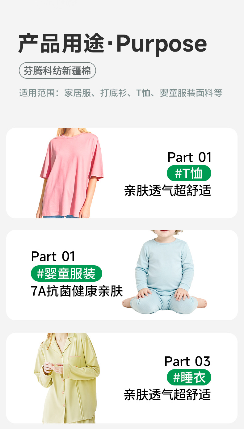芬腾科纺60s单面针织长绒棉拉架布T恤睡衣童装7A抗菌驱螨布料