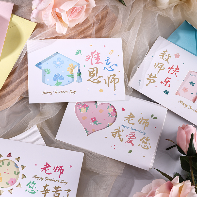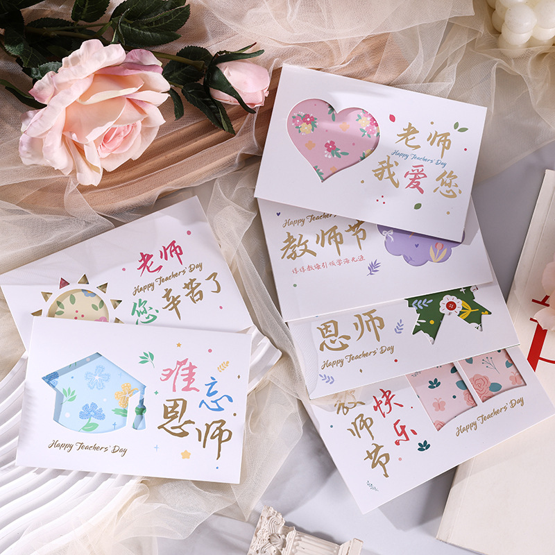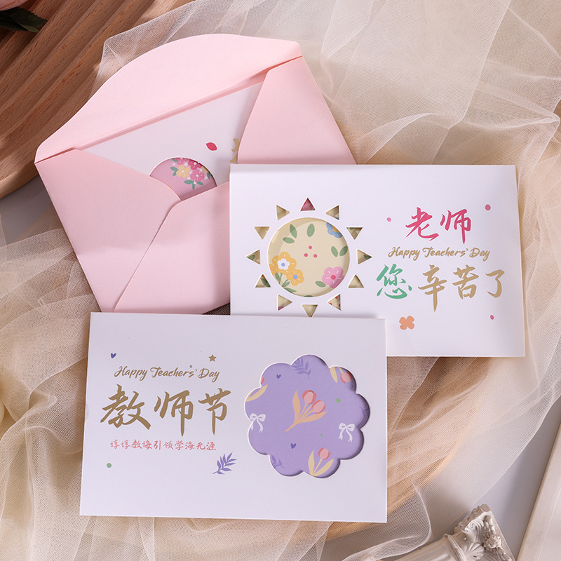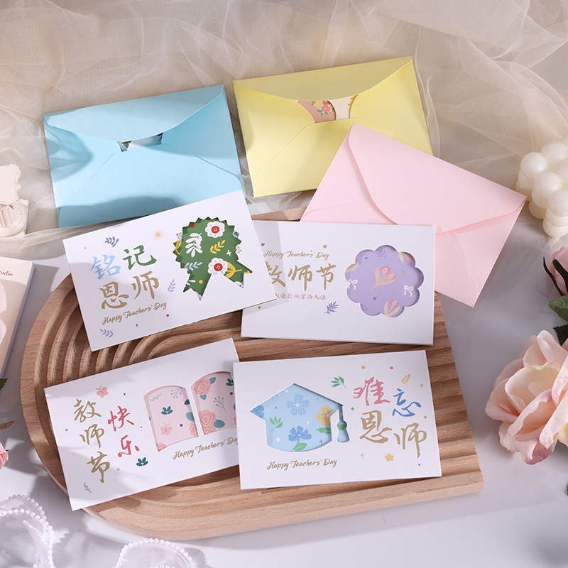 教師の日の箔押しカード封筒セット先生への手書きカードメッセージ祝福カード児童割引カード