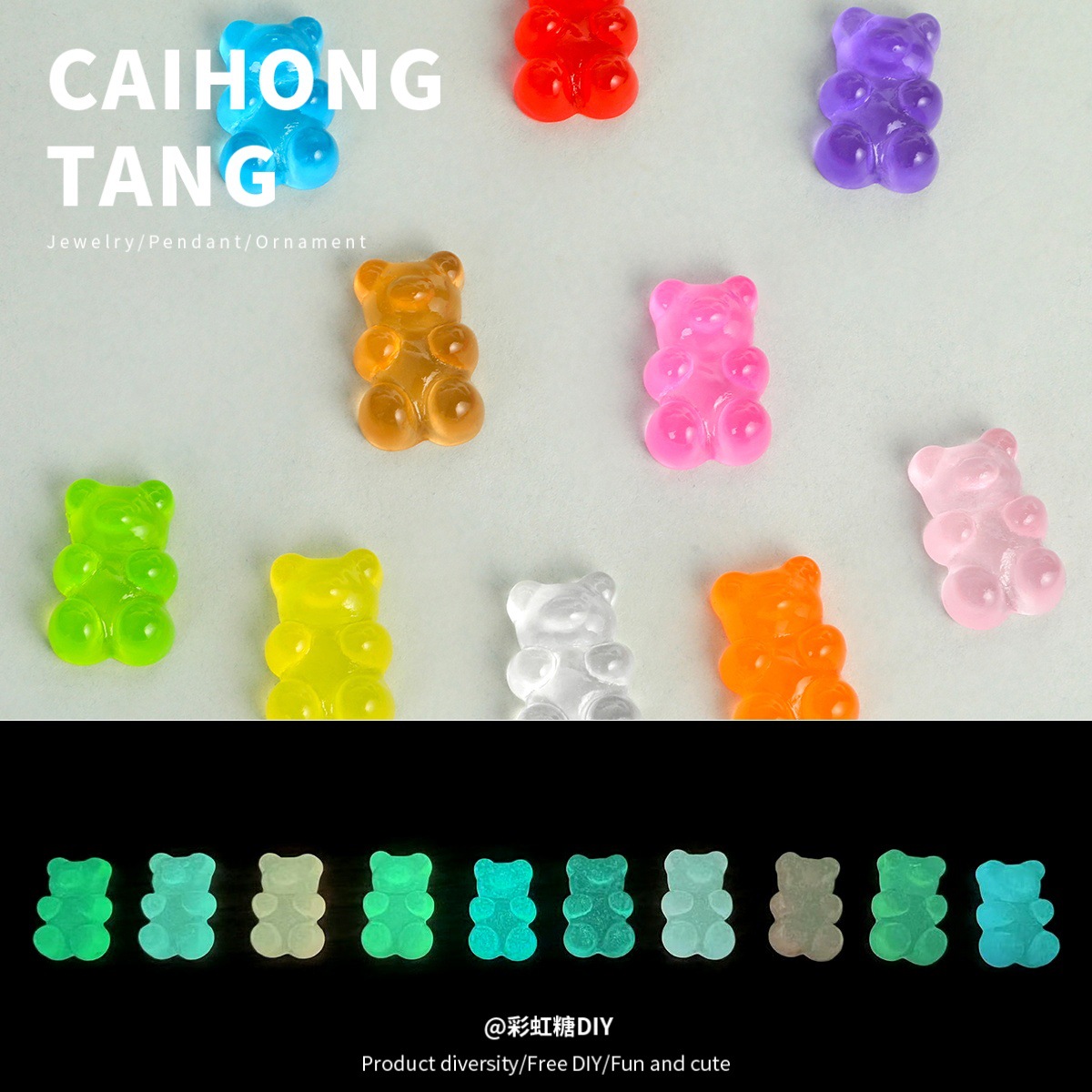 漫画樹脂かわいい発光クマジュエリーアクセサリークリエイティブ DIY キーホルダーデスクトップ装飾品材料卸売