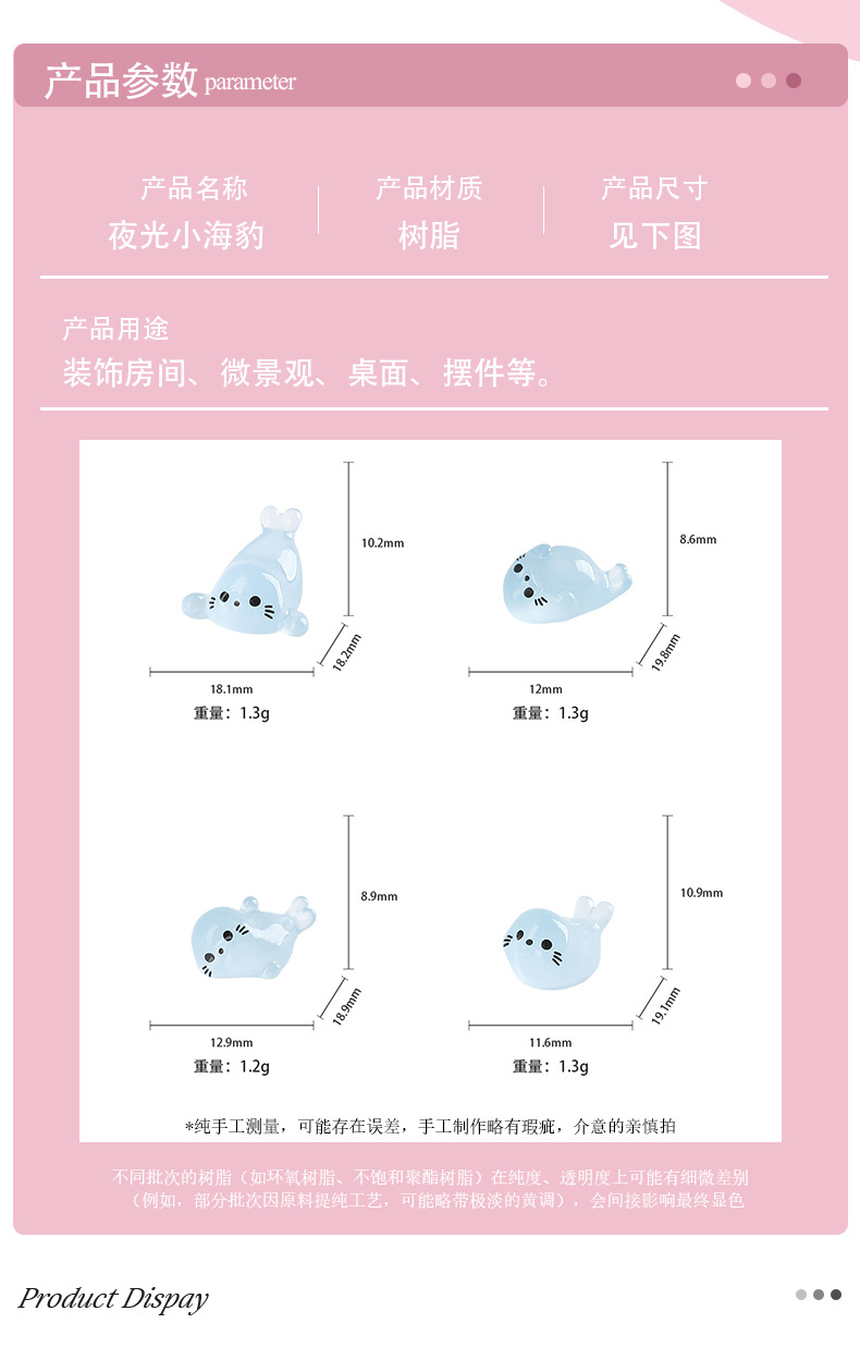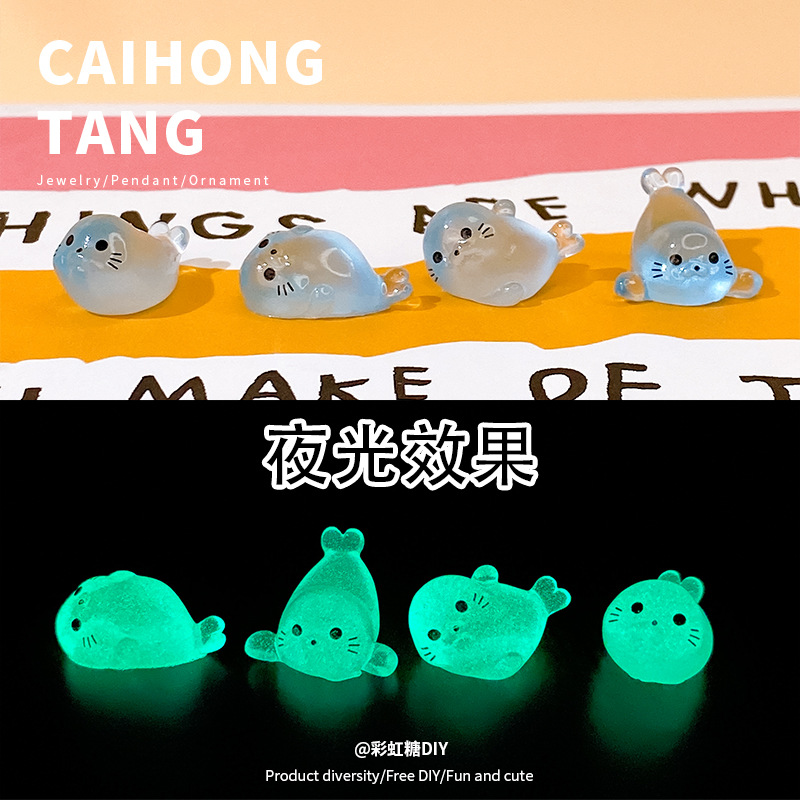 立体樹脂DIYアクセサリー 模造夜光アザラシ 新商品卸売 可愛いカラフル夜光小動物