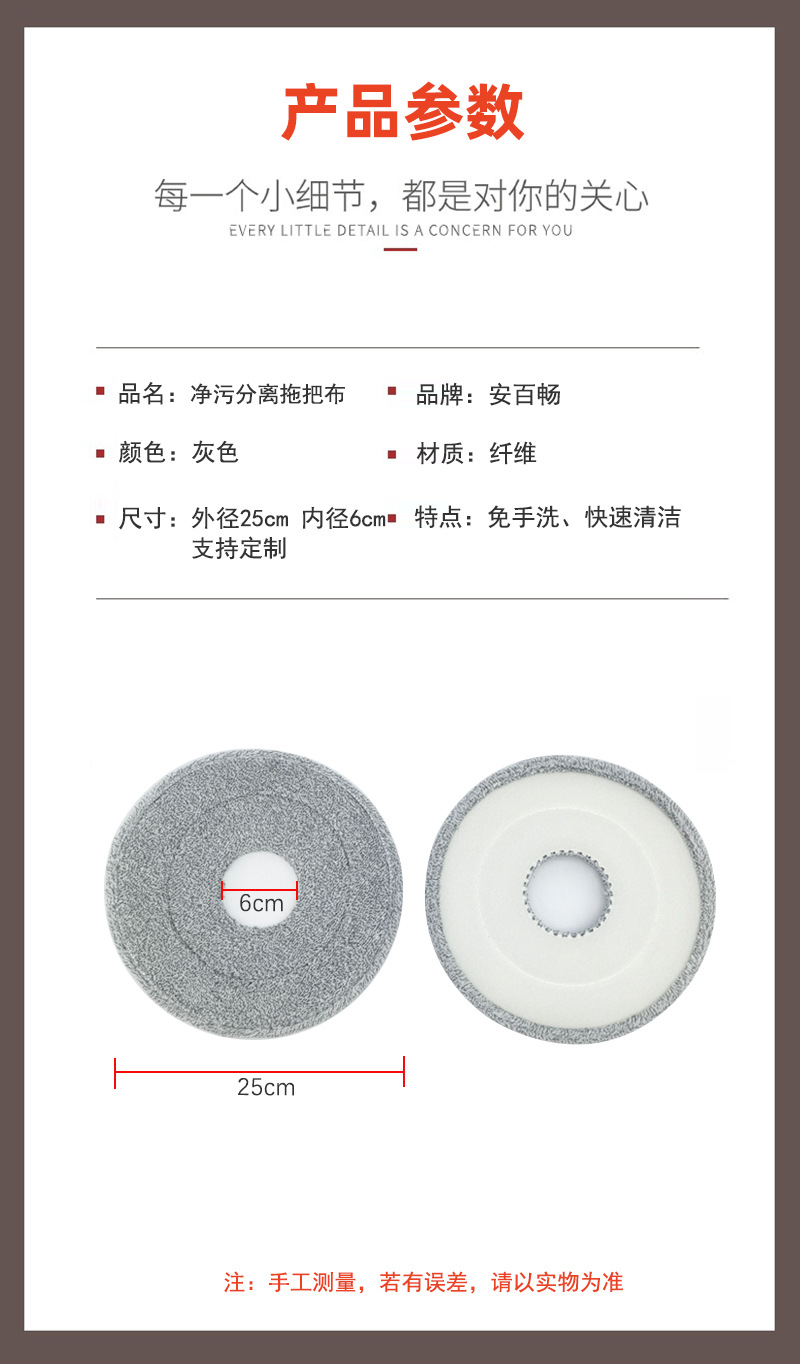 厚い円形モップ貼り付け布汚れ分離回転モップ交換布繊維家庭用洗浄ヘッド25cm布
