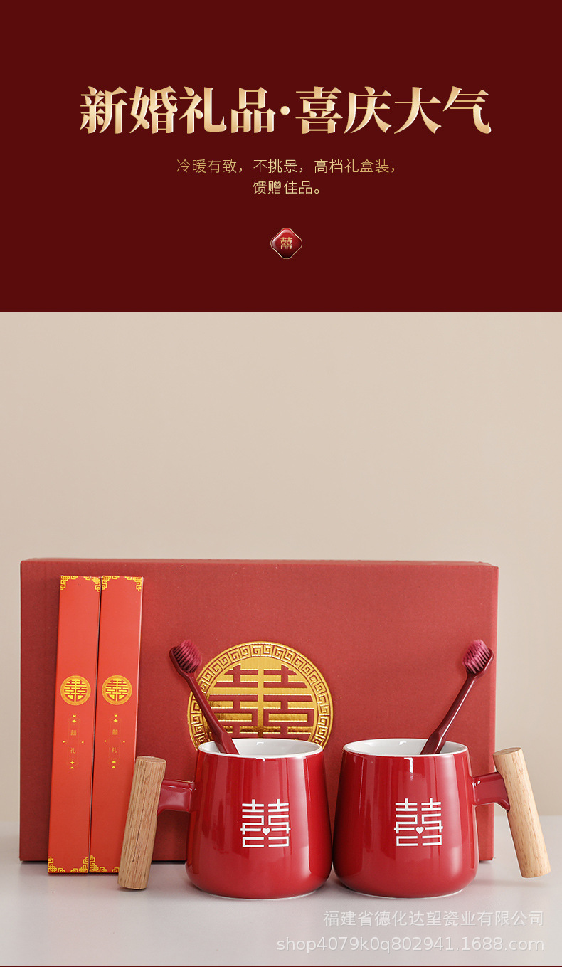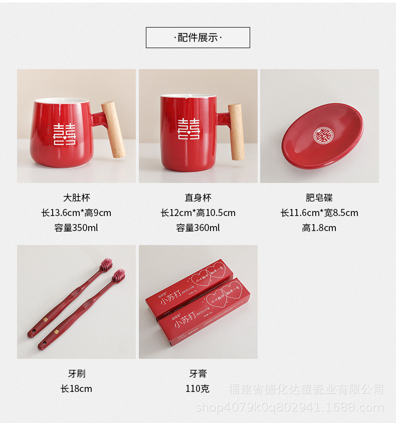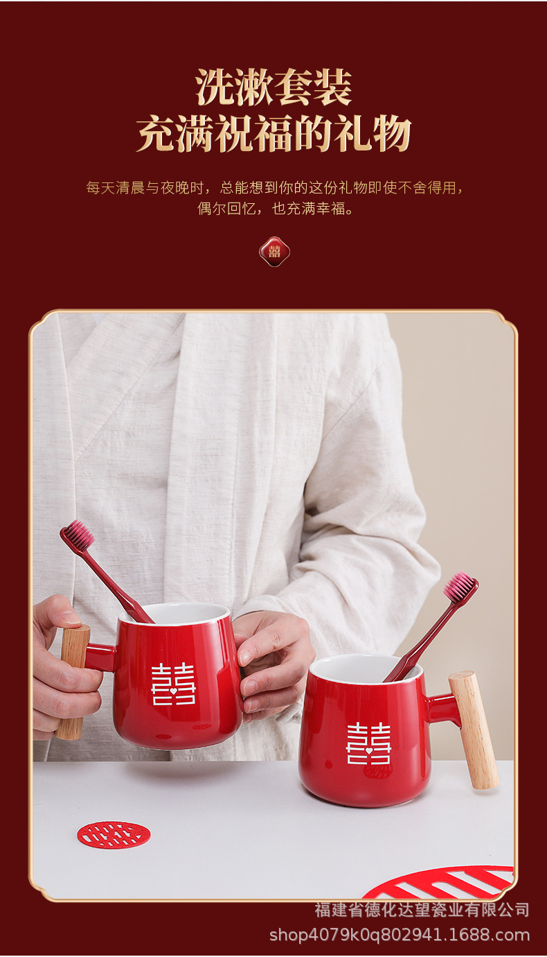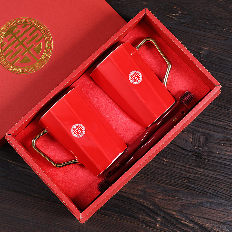結婚ブラッシングカップ陶磁器洗面カップ赤いギフトボックスセット持参用品うがいカップカップル新人カップ