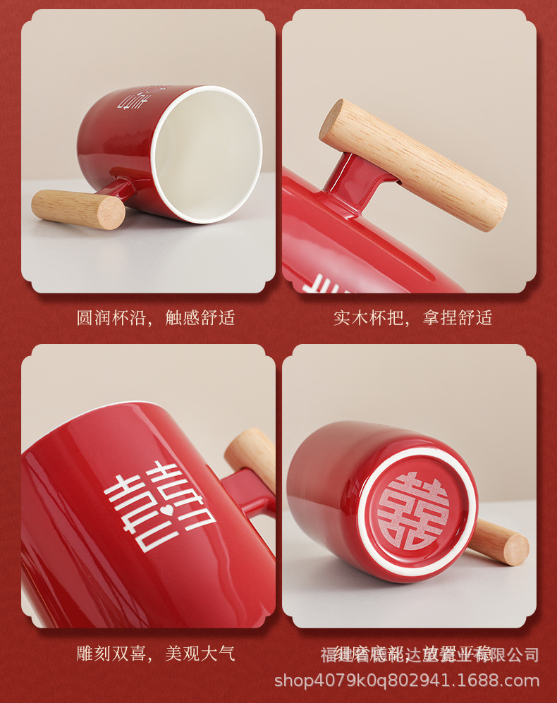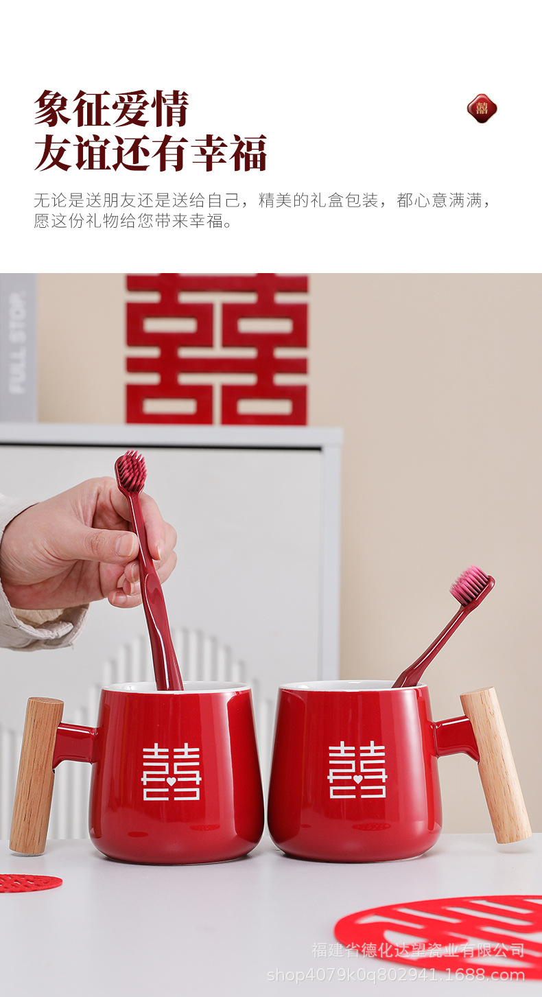 彫刻喜字うがいコップセラミック歯ブラシカップ赤結婚結婚結婚結婚用品卸売りプレゼント