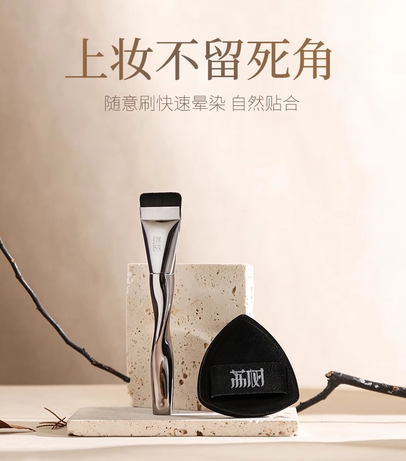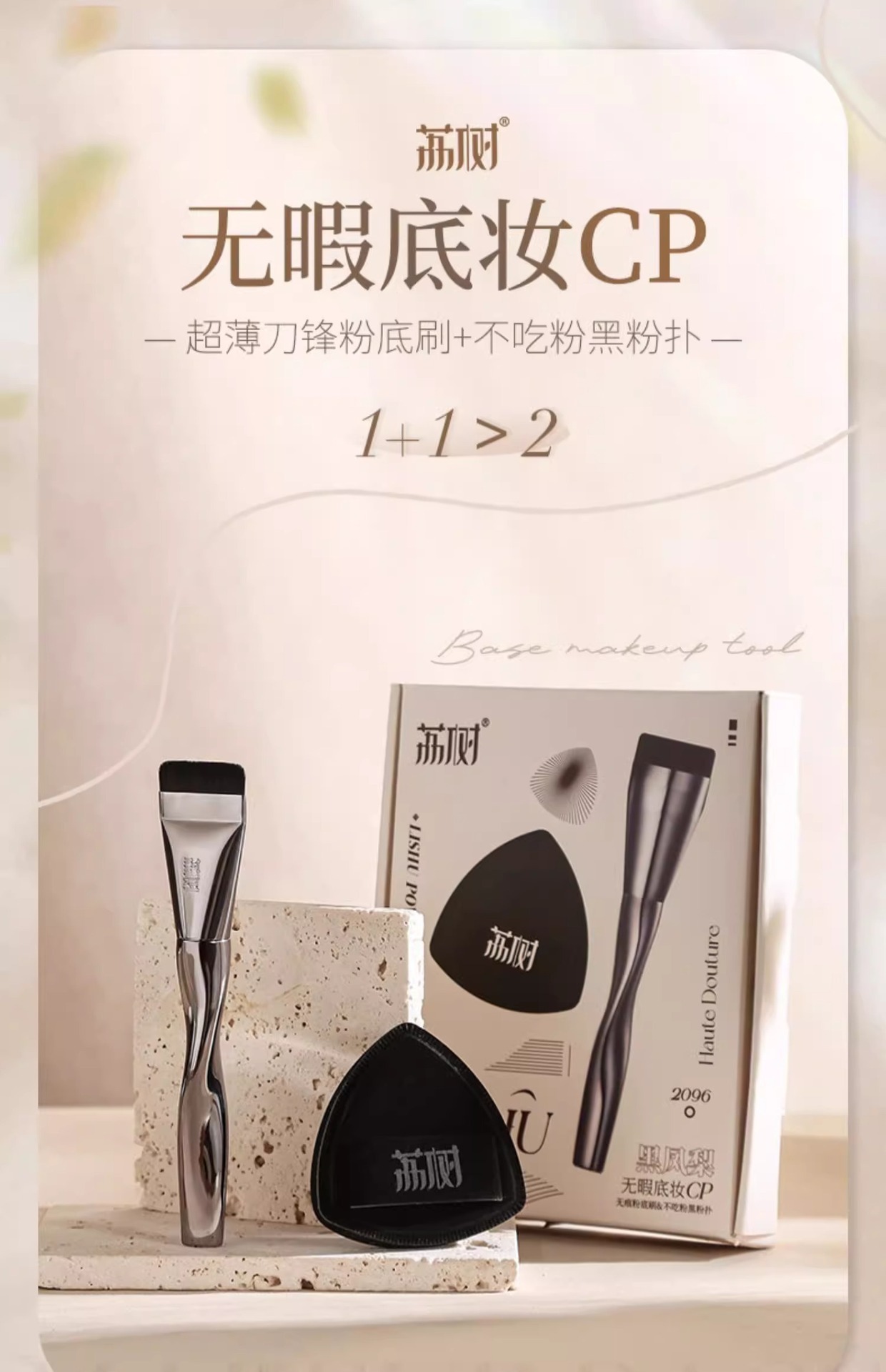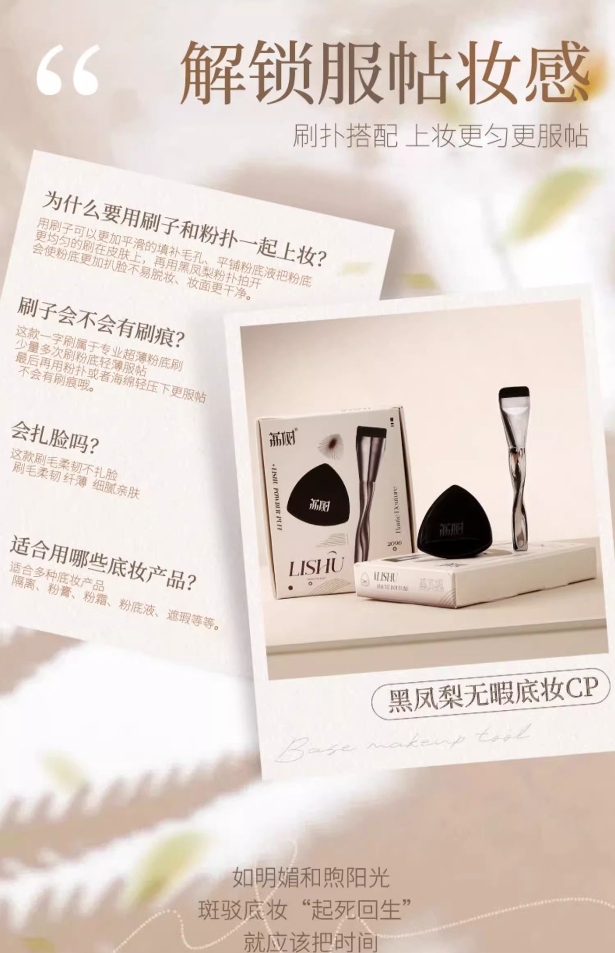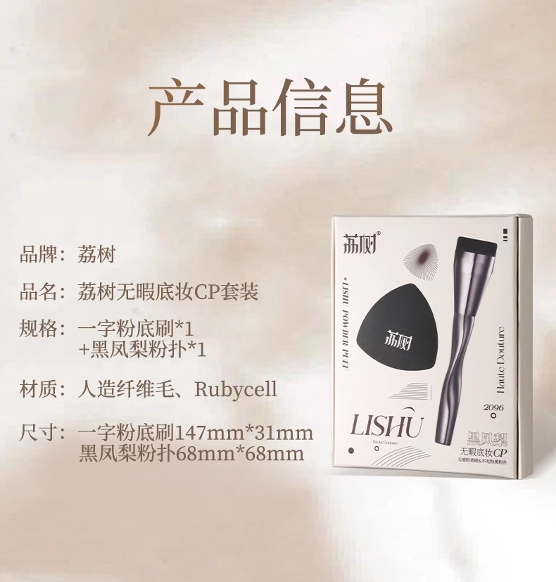 荔树粉底刷不吃粉轻薄无痕底妆美妆工具黑凤梨粉扑化妆刷高定礼盒