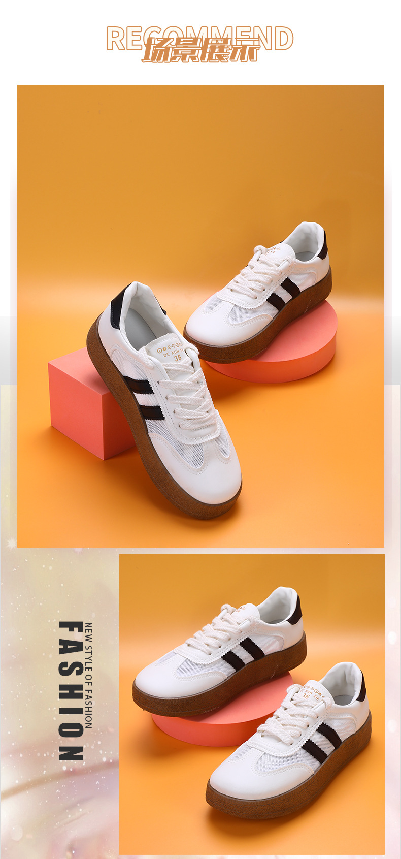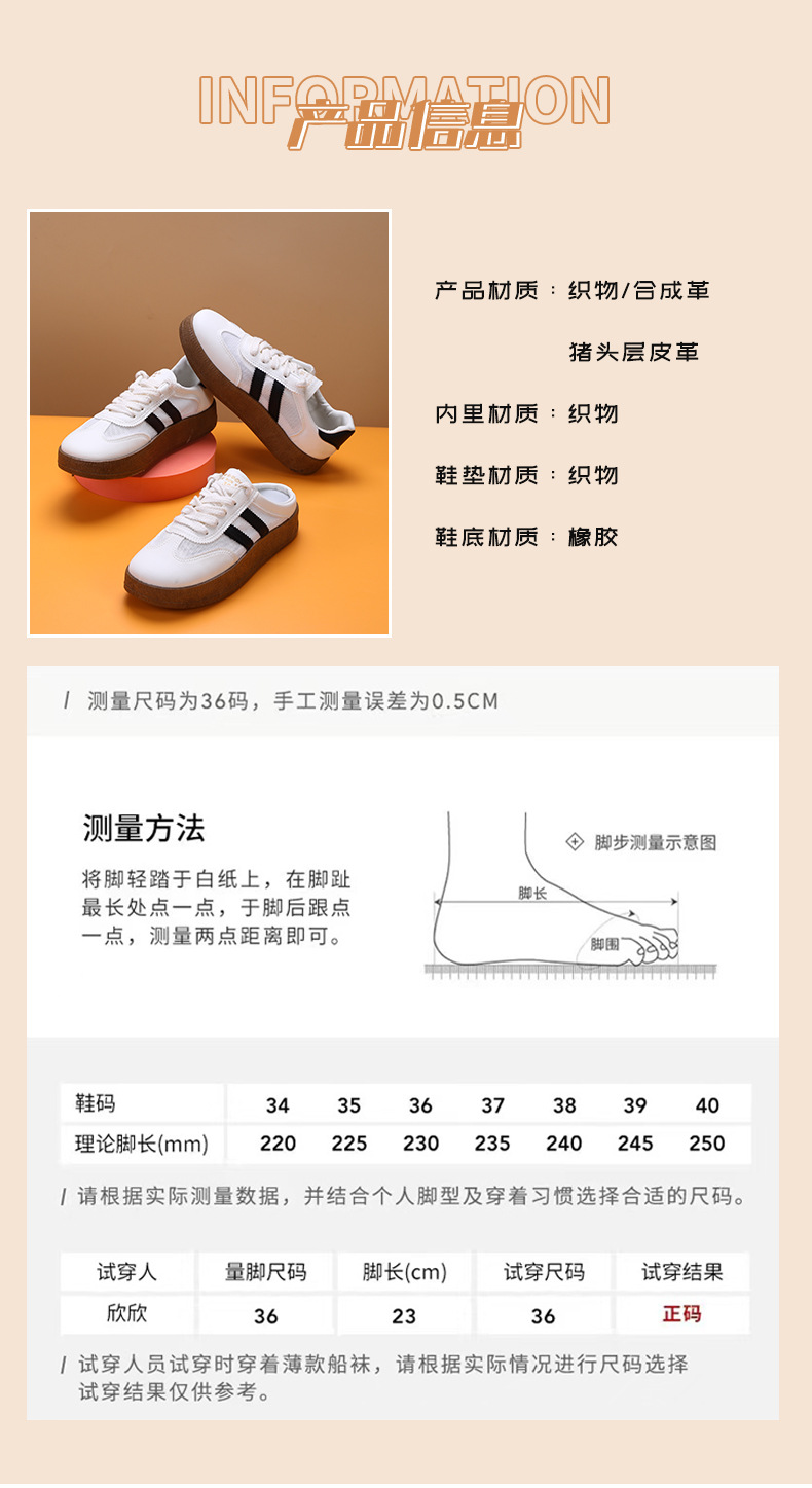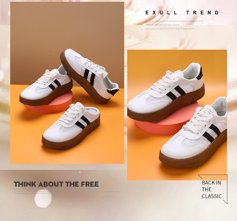 徳訓靴の女性靴2024新型の白い靴の半スリッパのレトロなコンビネーションのベルトの柔らかい底の快適な厚い底のカジュアルシューズ