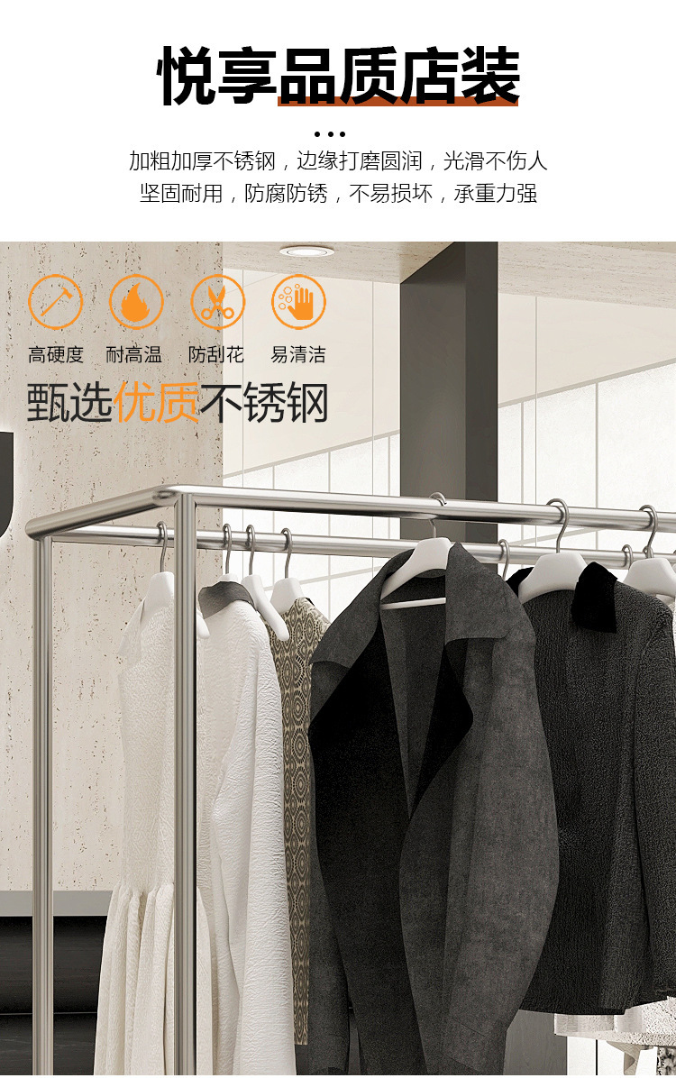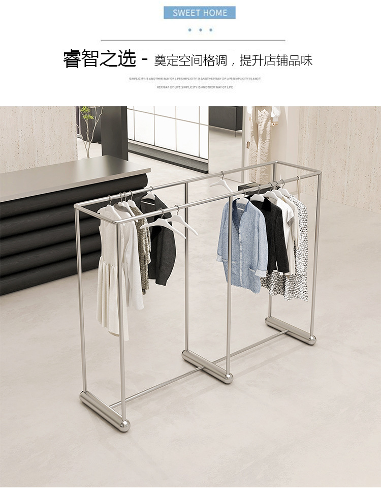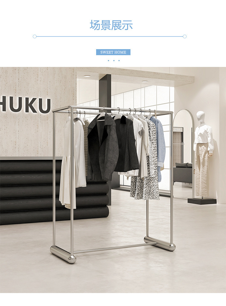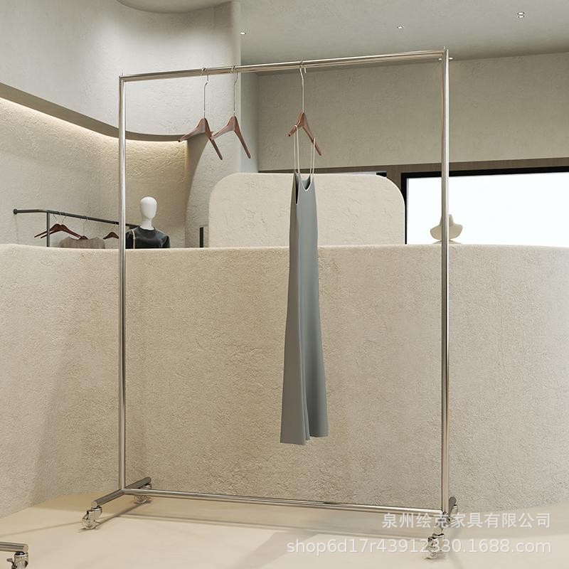 服装店展示架移动落地式货架男女装带轮挂衣架不锈钢晾晒衣帽架子