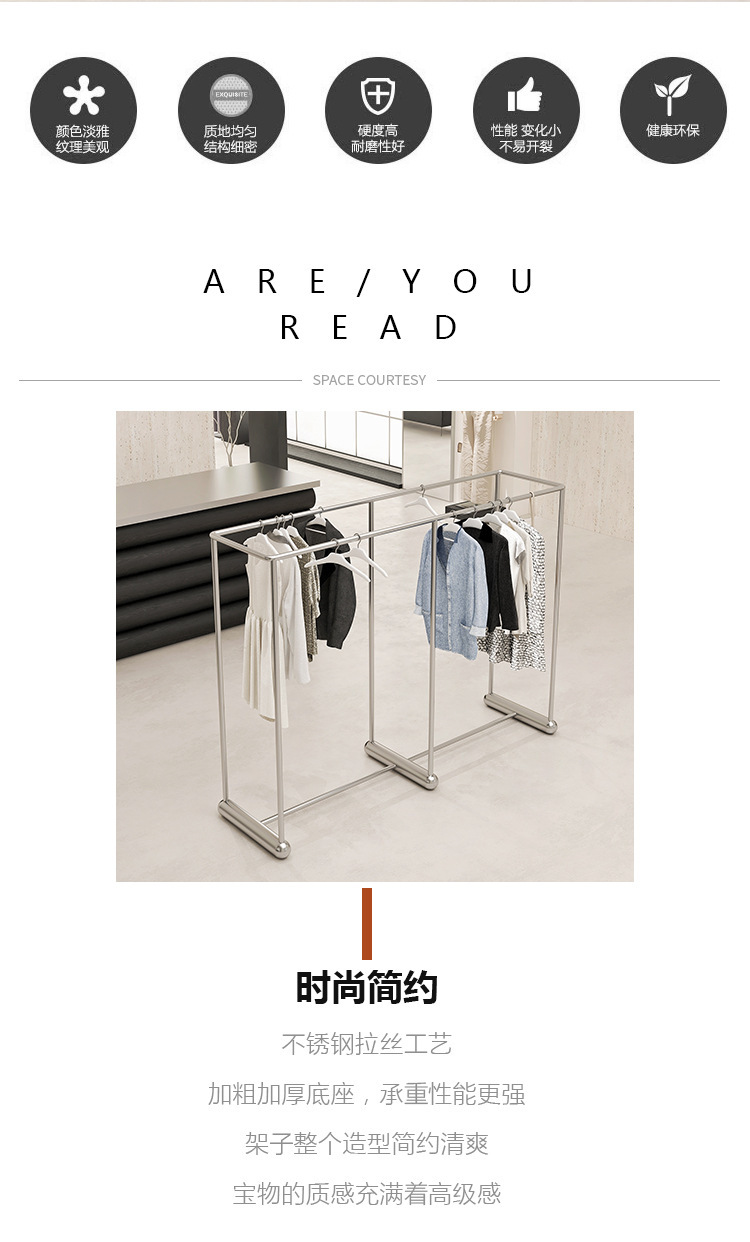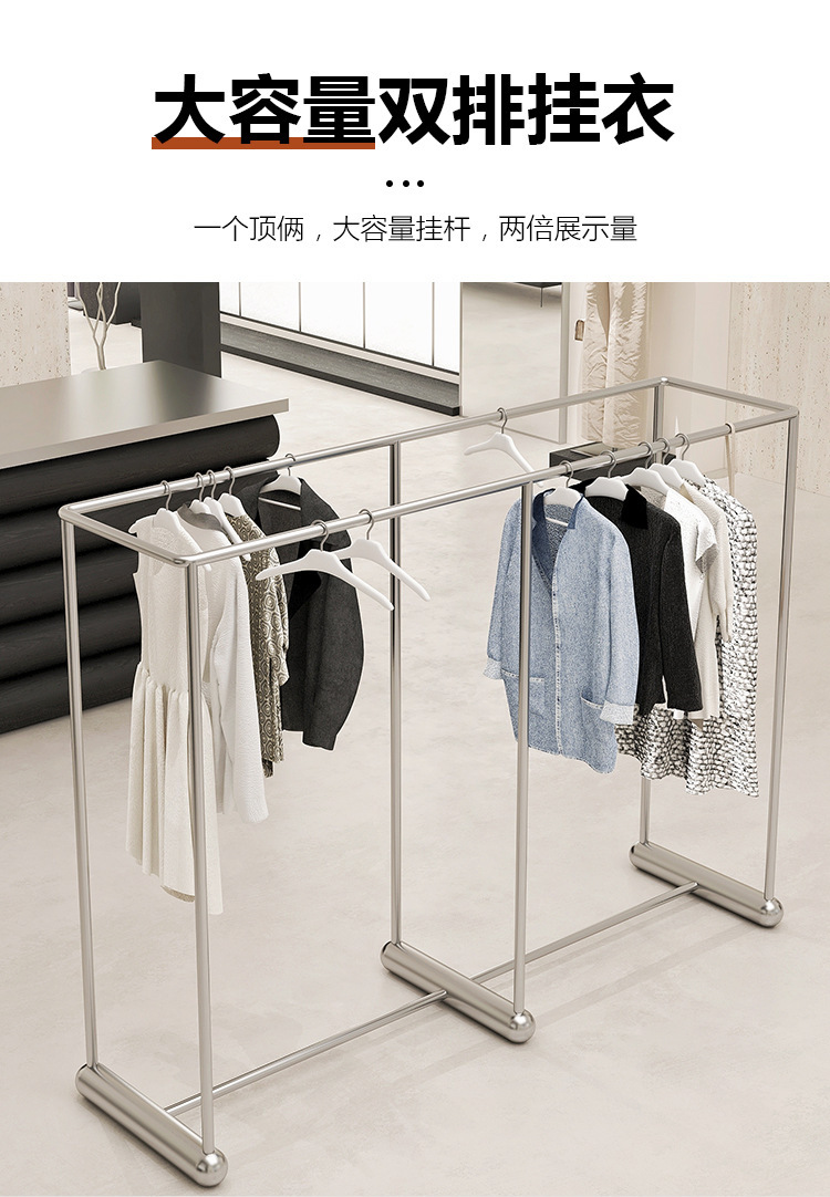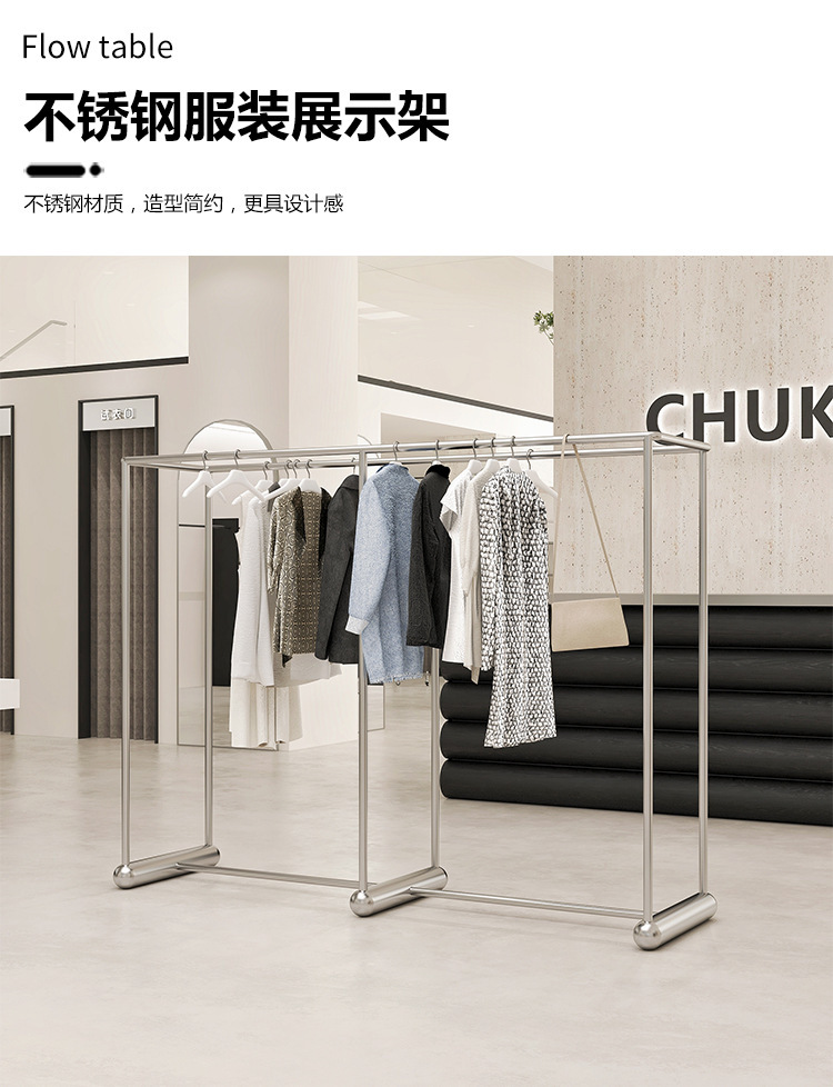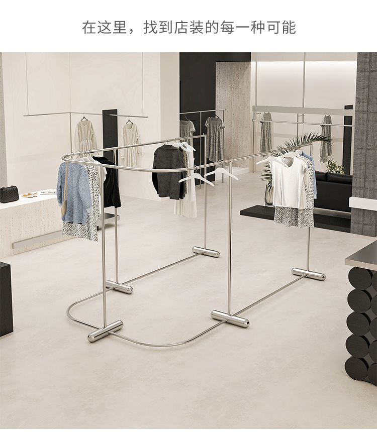 洋服店展示棚ステンレス伸線銀床置き式中島棚婦人服店陳列棚男服ハンガー