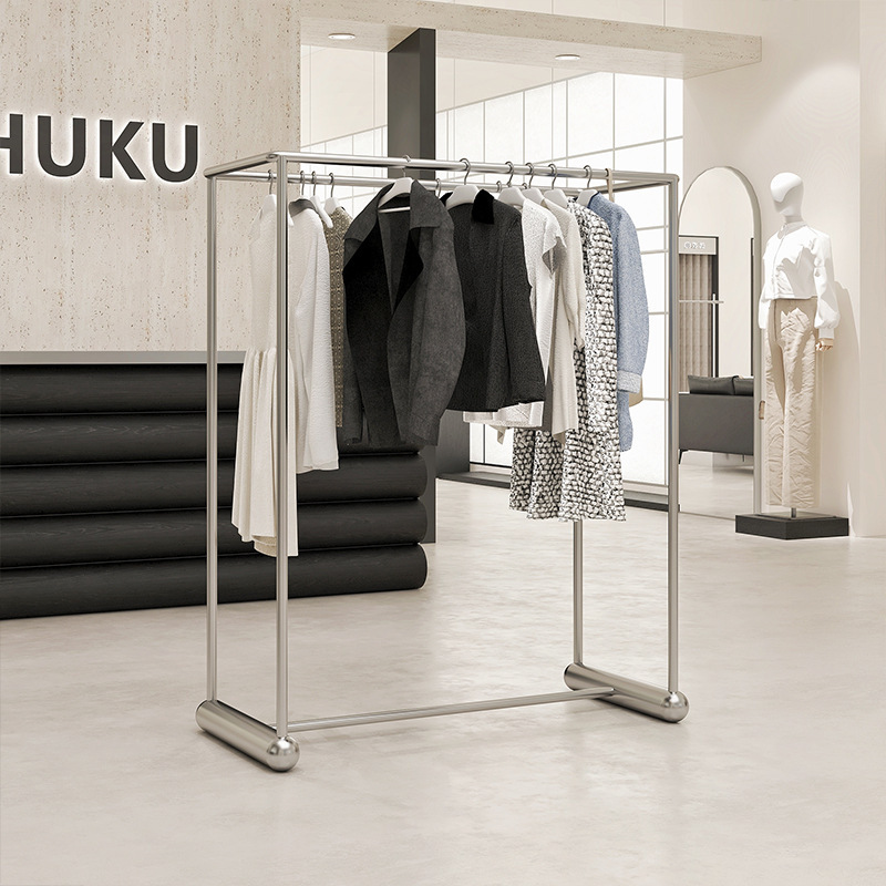 衣料品店ディスプレイラックモバイルアイランド棚婦人服店洋服ハンガー床置き横吊り洋服ハンガー大胆な床置き