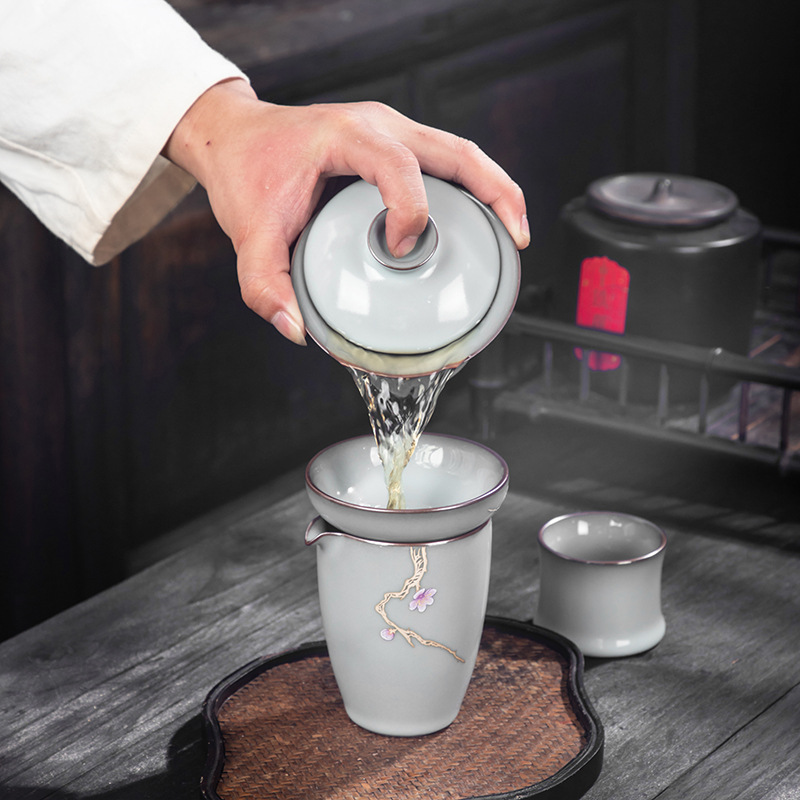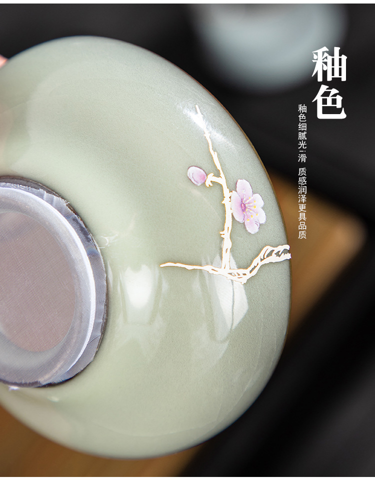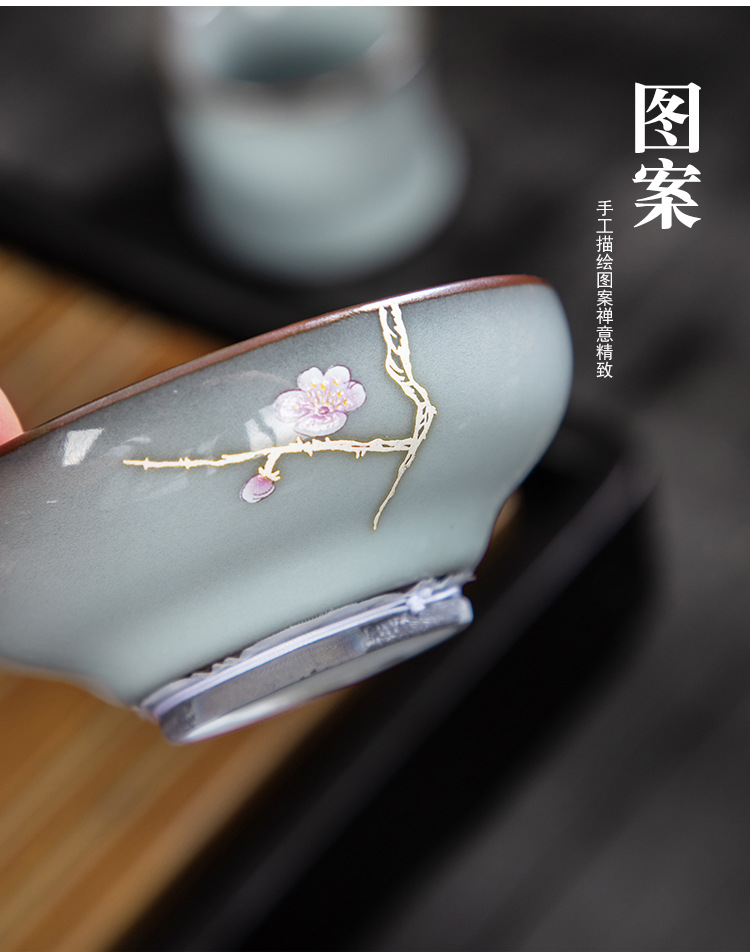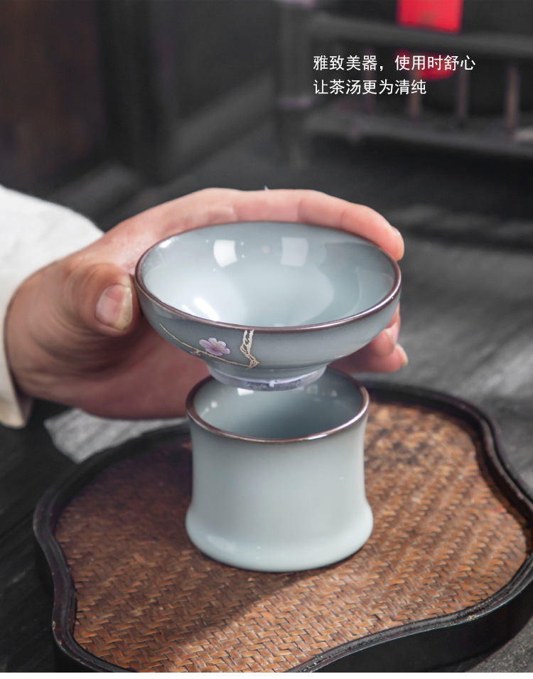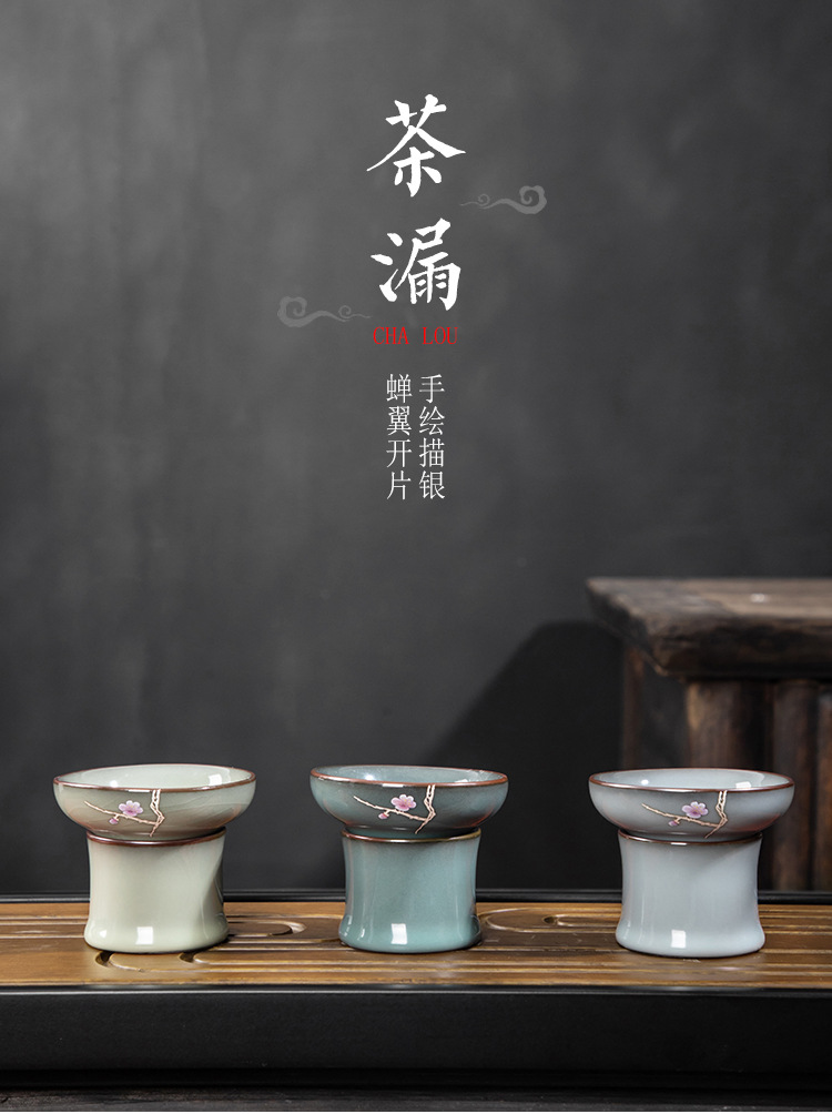 青磁茶漏れ手描銀鉄胎茶フィルタセットシンプル茶葉フィルタ工夫茶器部品
