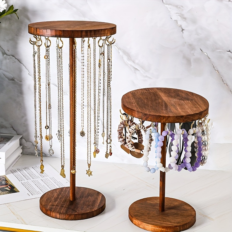 木製回転可能なジュエリーディスプレイスタンド木製ネックレスブレスレットスタンドデスクトップ多目的ジュエリー収納ラック