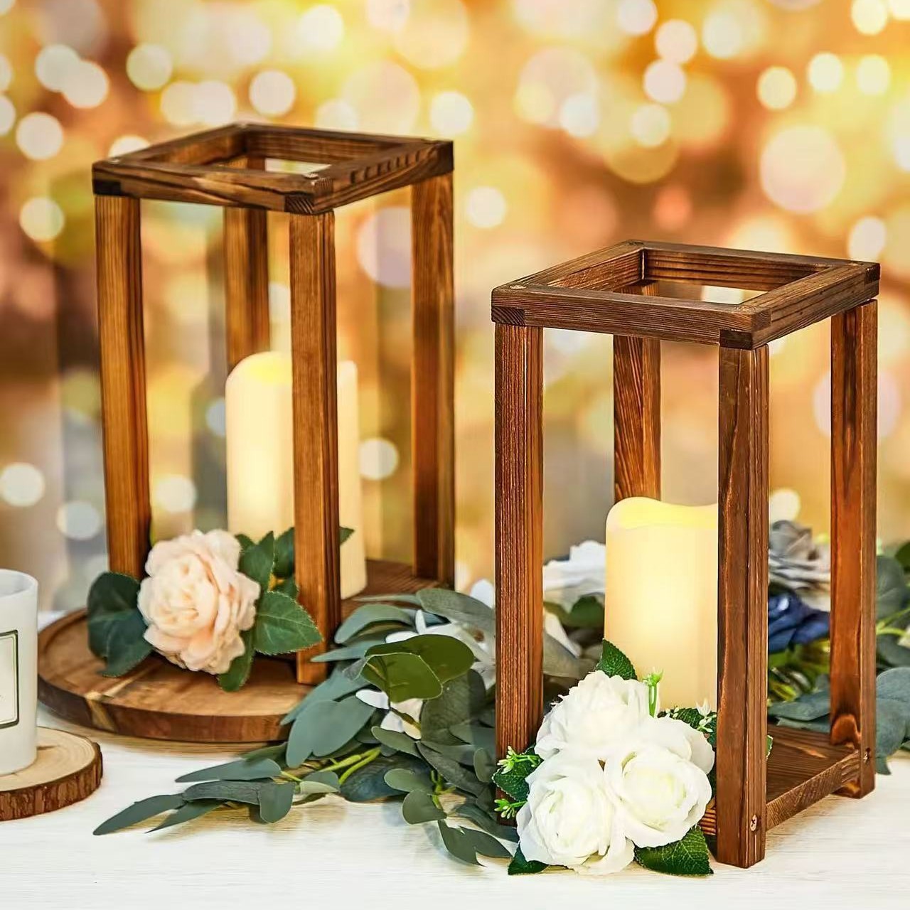 跨境木质婚礼花架婚礼桌面烛台架木制装饰摆件农舍木制灯笼装饰架