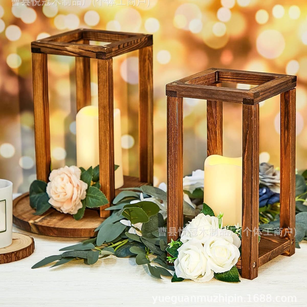 跨境木质蜡烛台婚礼灯笼台餐桌桌面装饰品农舍装饰门廊蜡烛底座