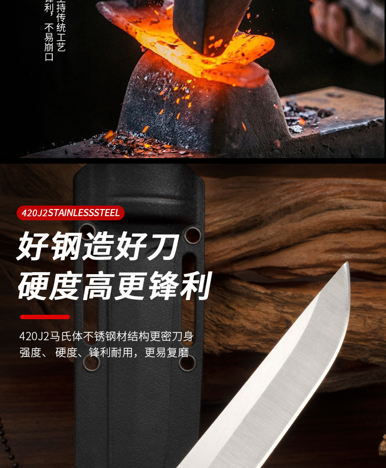 卸売高硬度厚いハンドル肉ポータブルナイフキャンプアウトドアカッター家庭用キッチン多機能フルーツナイフ