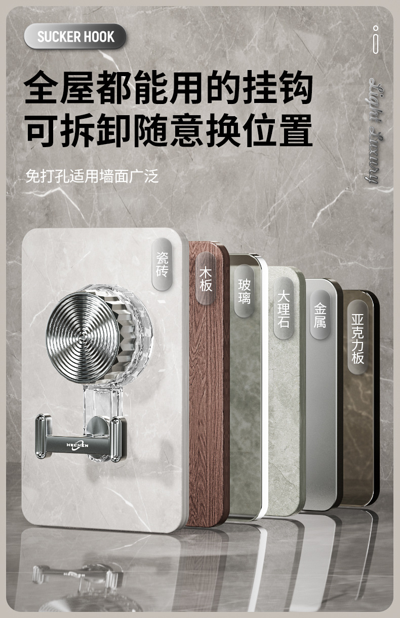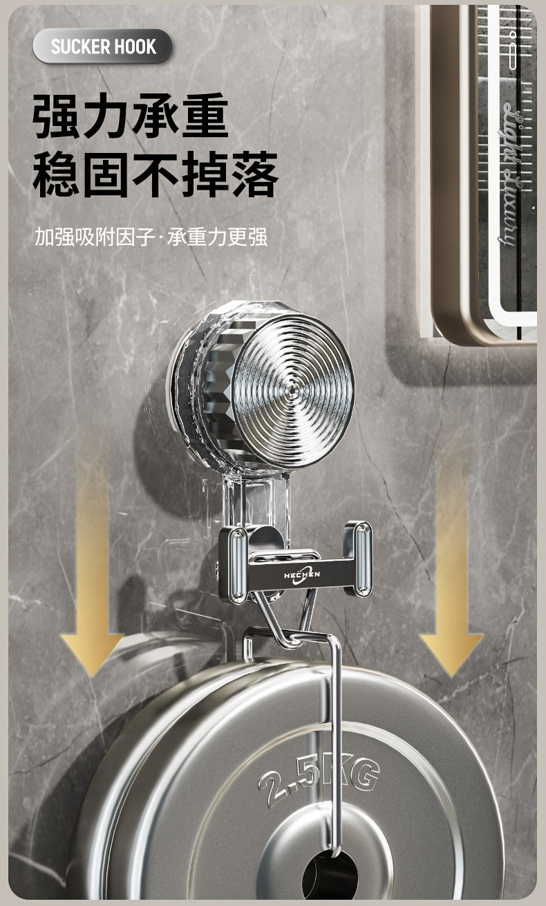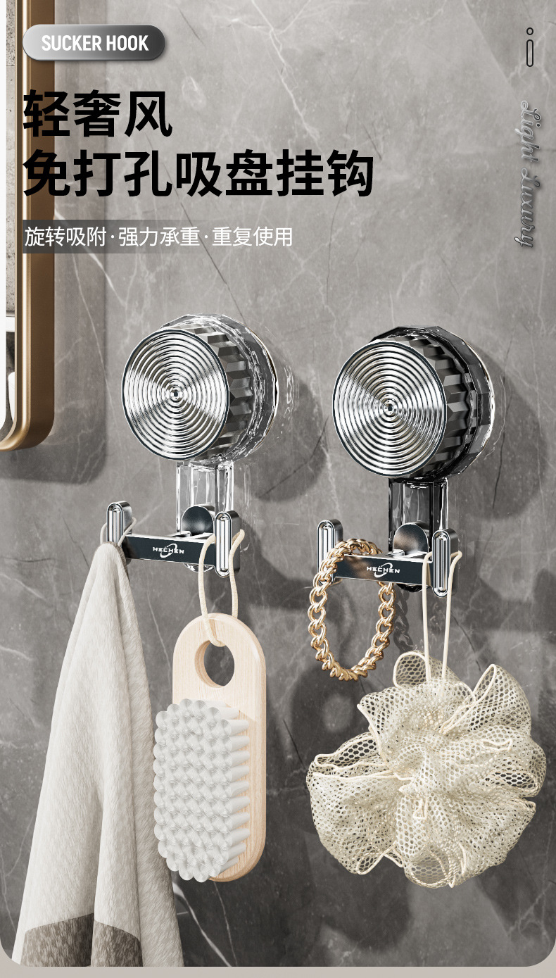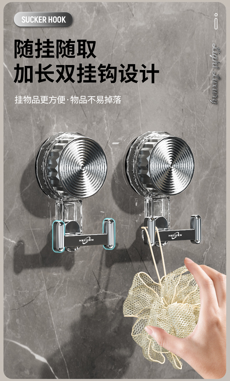 浴室卫生间旋转吸盘挂钩免打孔强力承重真空无痕厨房门后墙壁粘钩