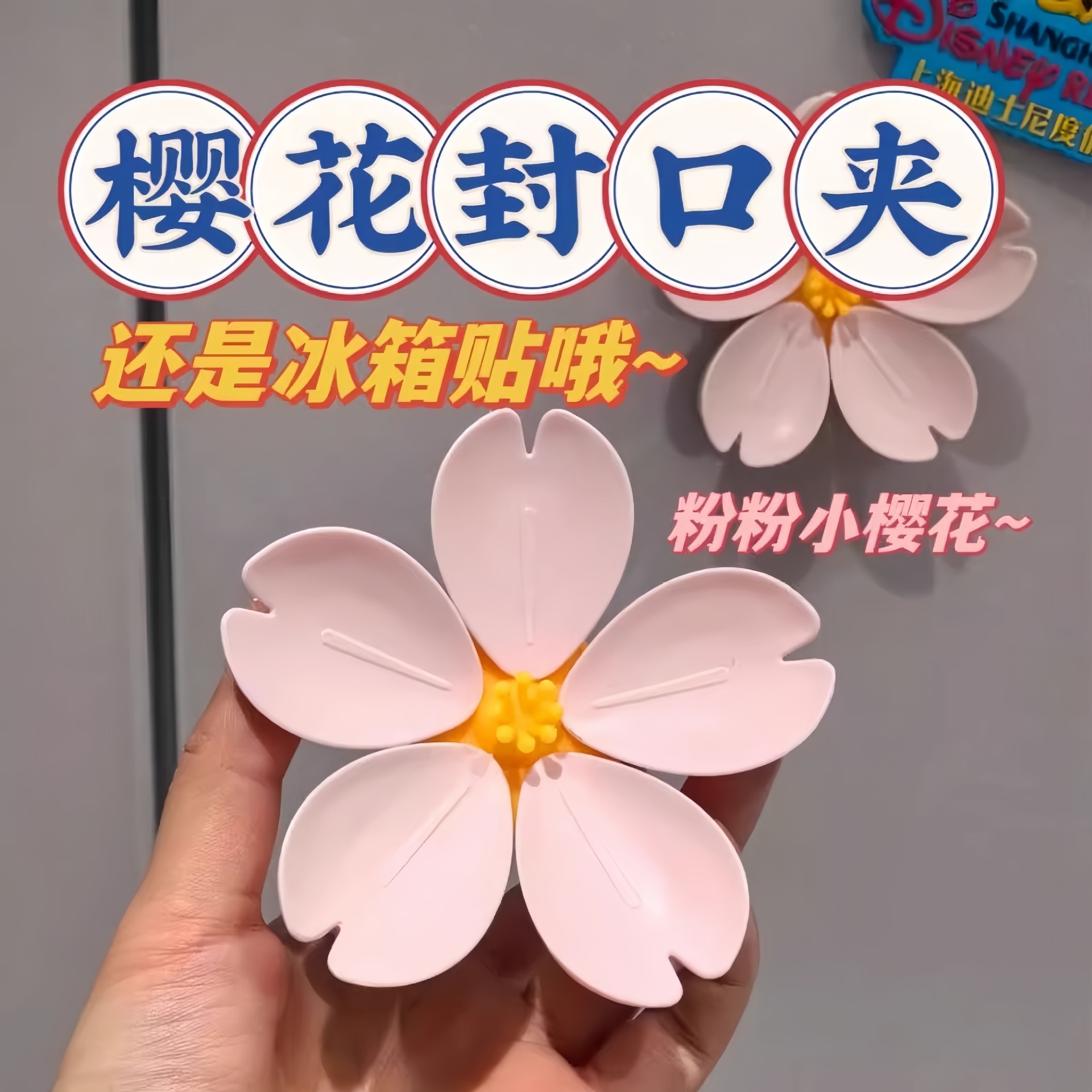 樱花封口夹子磁吸夹子防潮封口夹冰箱个性零食樱花密封夹3d立体夹
