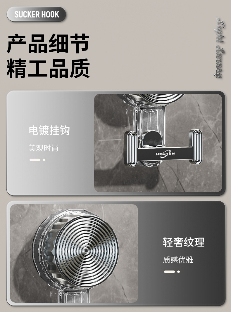 メッキ軽豪華強力吸盤フックダブルフック玄関キッチントイレ整理収納衣類帽子フック