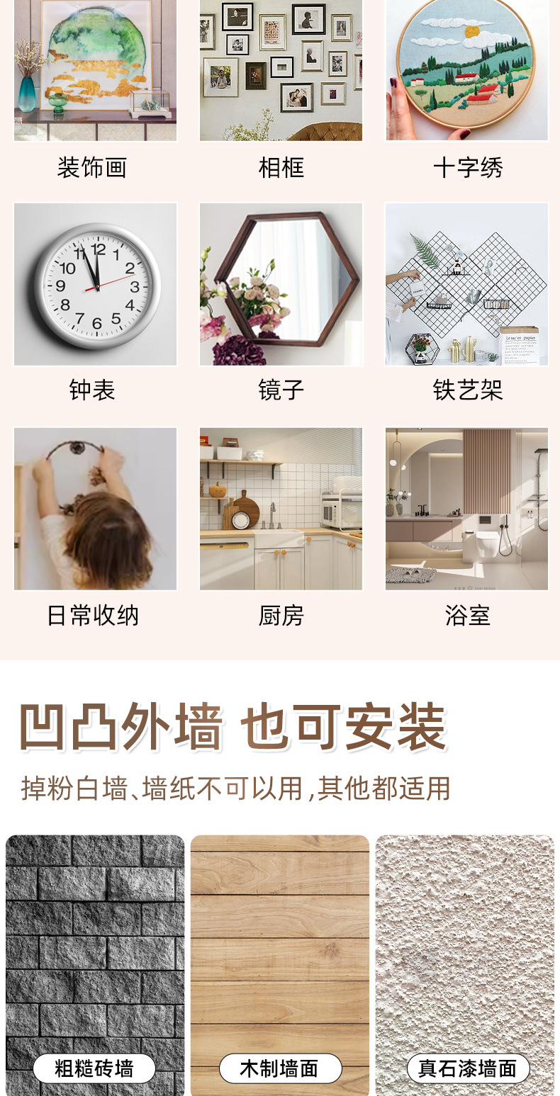 挂画神器免打孔挂钩相框婚纱照挂墙无痕钉专用钟表墙面壁画免钉贴