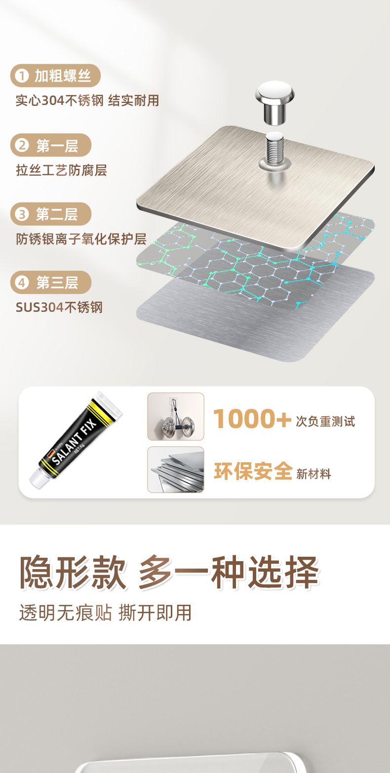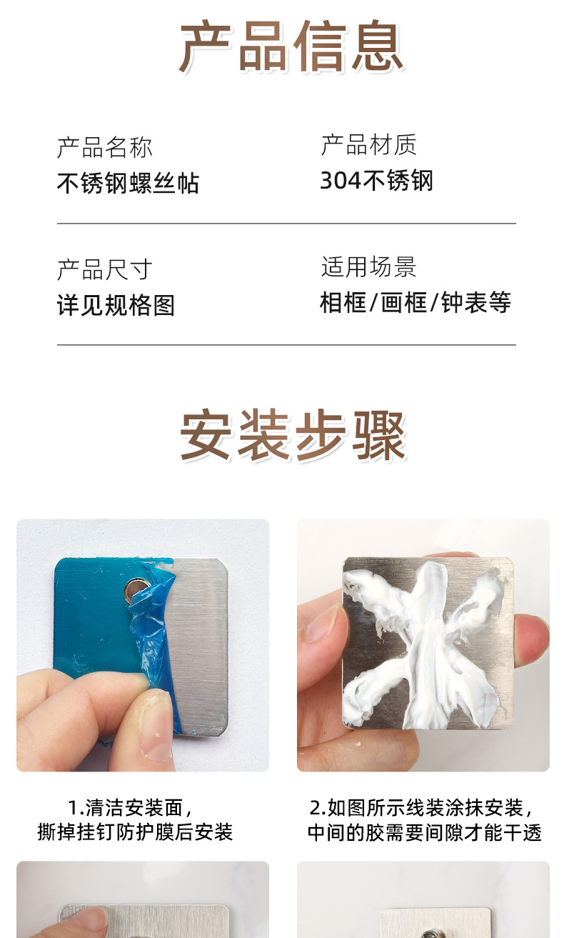 不锈钢螺丝贴无痕承重挂钩相框墙钉粘胶金属免钉贴免打孔挂钩