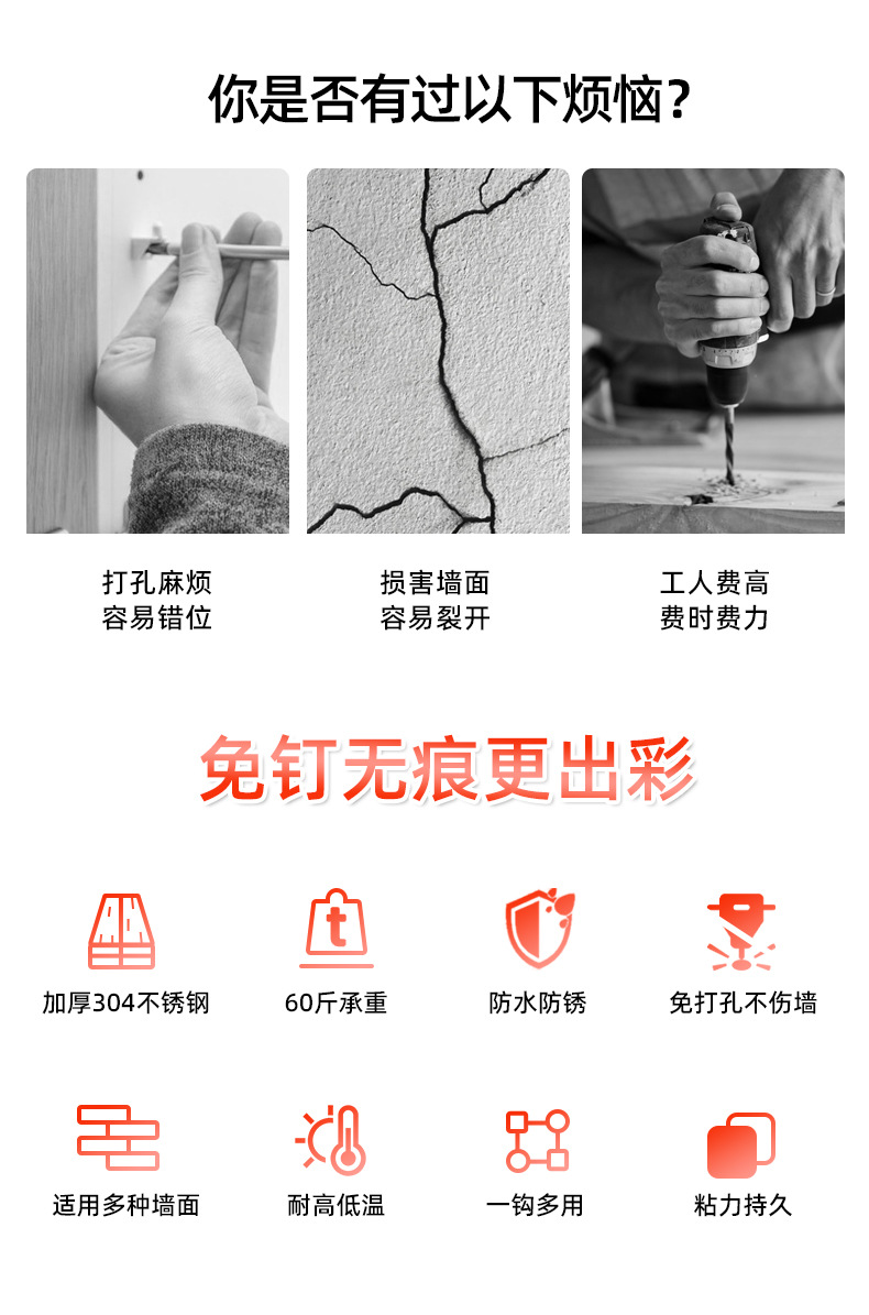 无痕挂钩免打孔挂画神器相框婚纱照专用挂钉墙上免钉贴强力固定贴