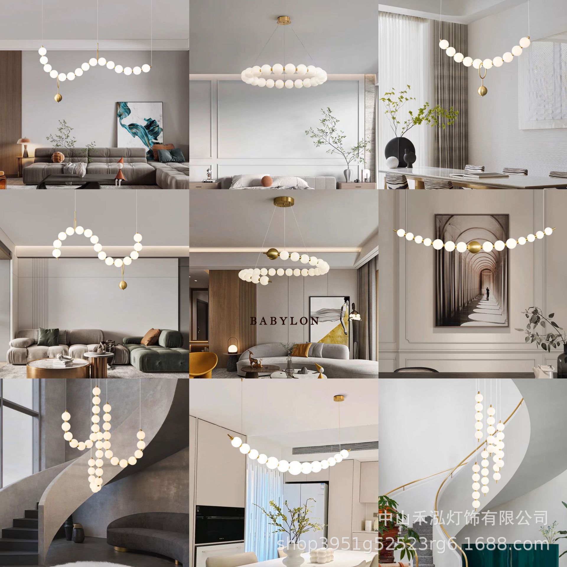 フランスクリーム風真珠ネックレスシャンデリア北欧デザイナーシンプルなクリエイティブリビングレストラン現代軽贅沢照明器具