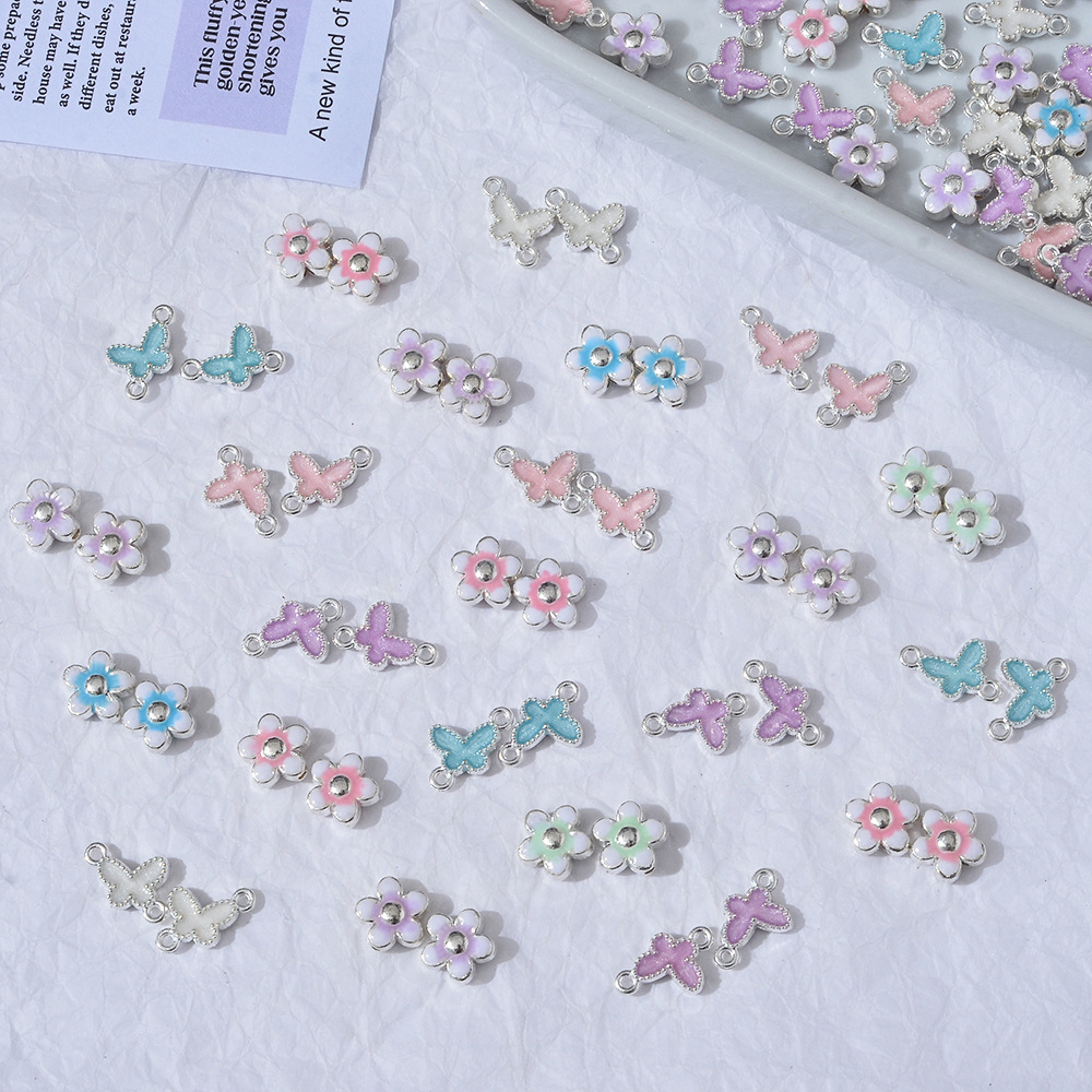合金滴油清新小花蝴蝶吊坠 手工diy饰品配件手链项链串珠材料散珠