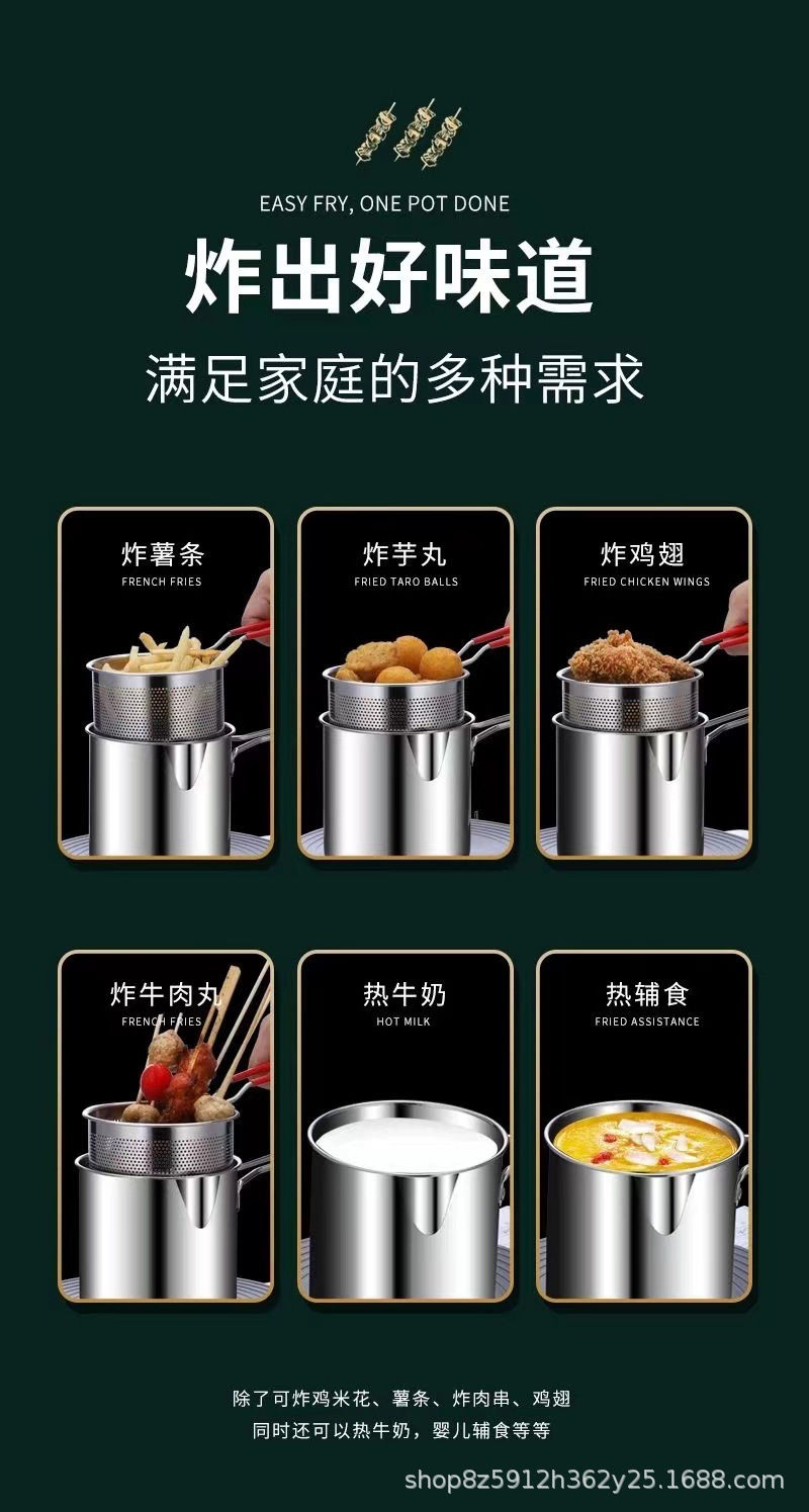 304ステンレス揚げ鍋ミニ多機能省油フィルター天婦深鍋揚げ鶏フライドポテト家庭用小揚げ鍋