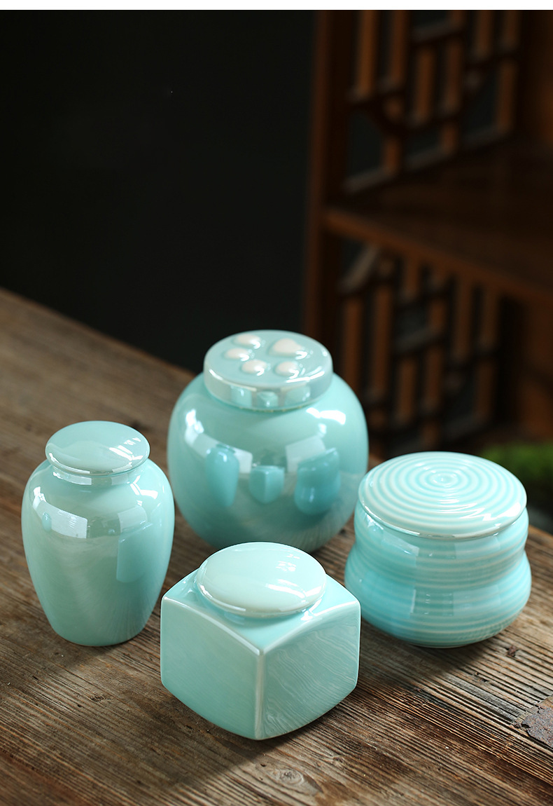 復古風陶缶結晶釉薬磁器缶緑茶缶空瓶中錠剤丸香粉貯蔵密封缶礼箱包装