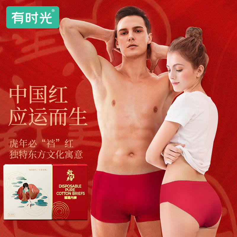 蛇年(干支)用の赤い使い捨て下着、男性用ボクサーパンツ、女性用四角パンツ、純綿、無菌