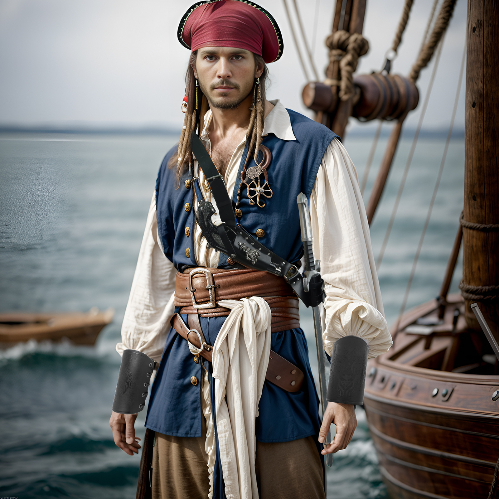 中世のバイキング人ルネッサンスの腕を守る海賊がコスプレ衣装の舞台道具を飾っています。