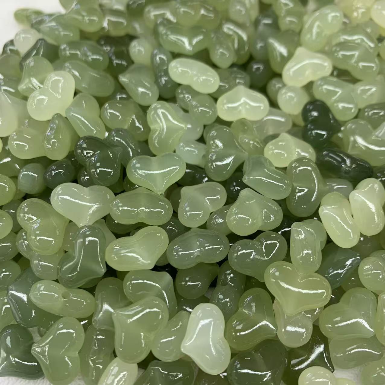 厂家批发天然和田玉青海料晴水屁桃直通孔配件爱心直通孔配饰diy