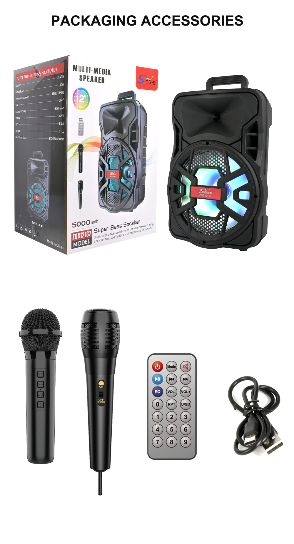 配件:1个无线话筒.1个有线话筒,充电线.遥控器,说明书
