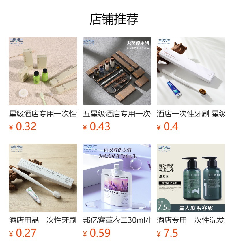邦億客ホテル使い捨てアメニティ6点セット ホテル用歯ブラシ・歯磨き粉卸売 ホテル卸売