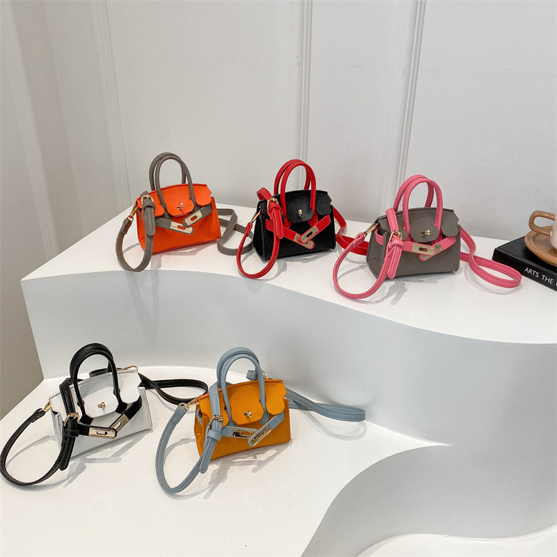 子供用バッグ 2025 新しいヨーロッパとアメリカのファッションライチ柄ミニケリーバッグ女の子のためのコントラストカラークロスボディバッグ口紅バッグ女性のための