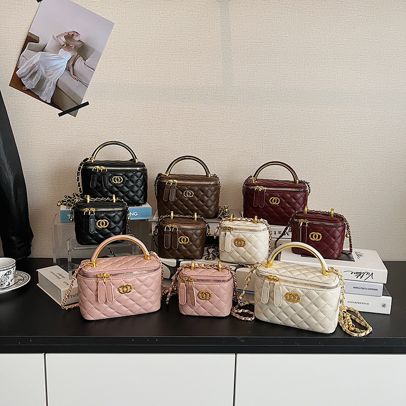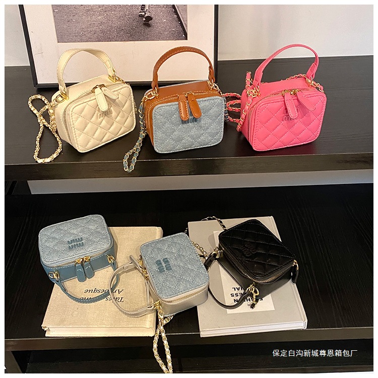 2025秋冬新款盒子包女质感链条手提包时尚小香风菱格单肩斜挎包