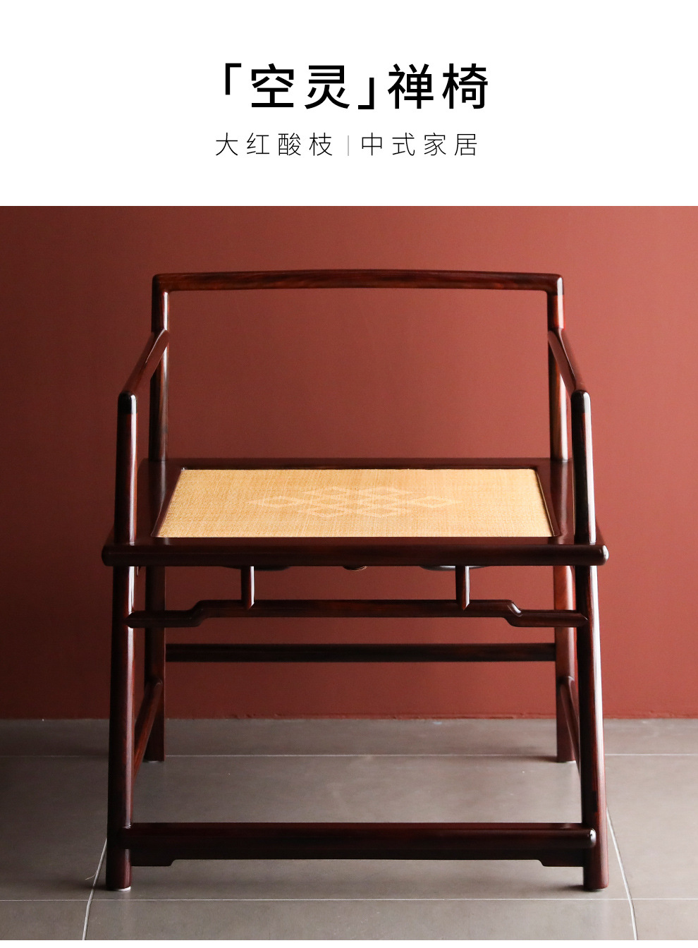大紅酸枝騰面禅椅子実木中国式椅子交指黄檀明式紅木禅修椅子レジャー椅子