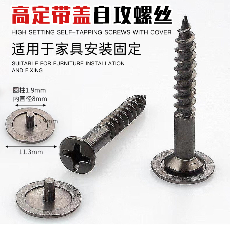 装飾カバー付き高精細ネジ、キャビネットワードローブネジ、カバー、クロスヘッドタッピングネジカバー