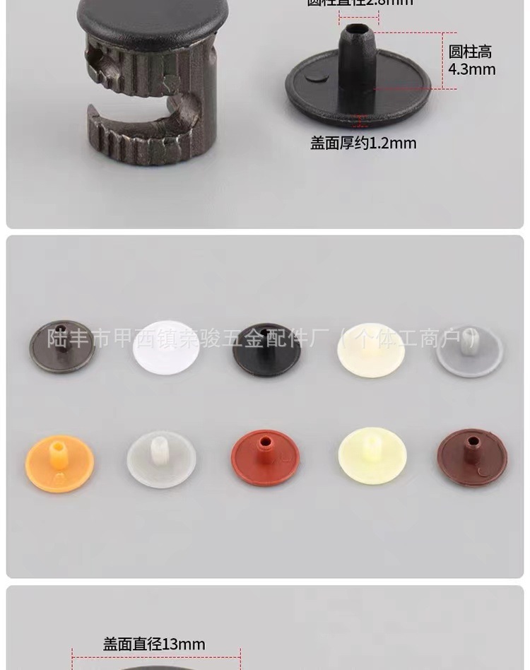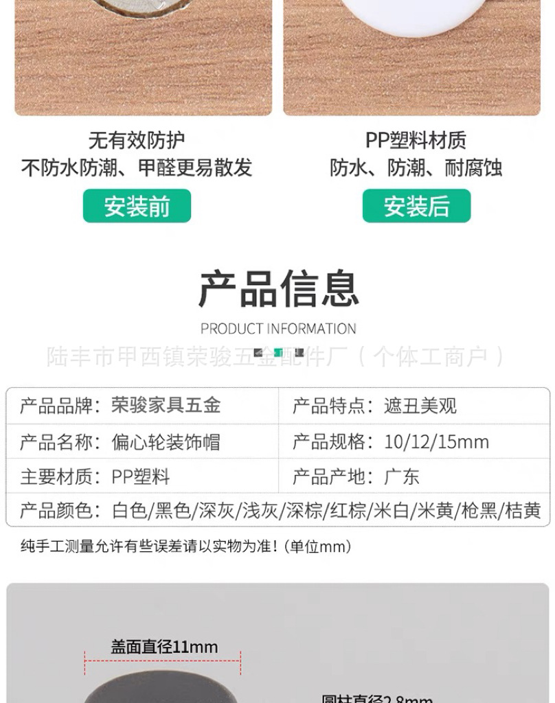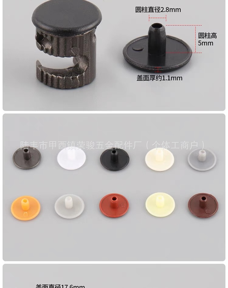 橱柜装饰盖帽10MM.12MM三合一遮丑衣柜十字偏心轮圆柱加长塑料盖