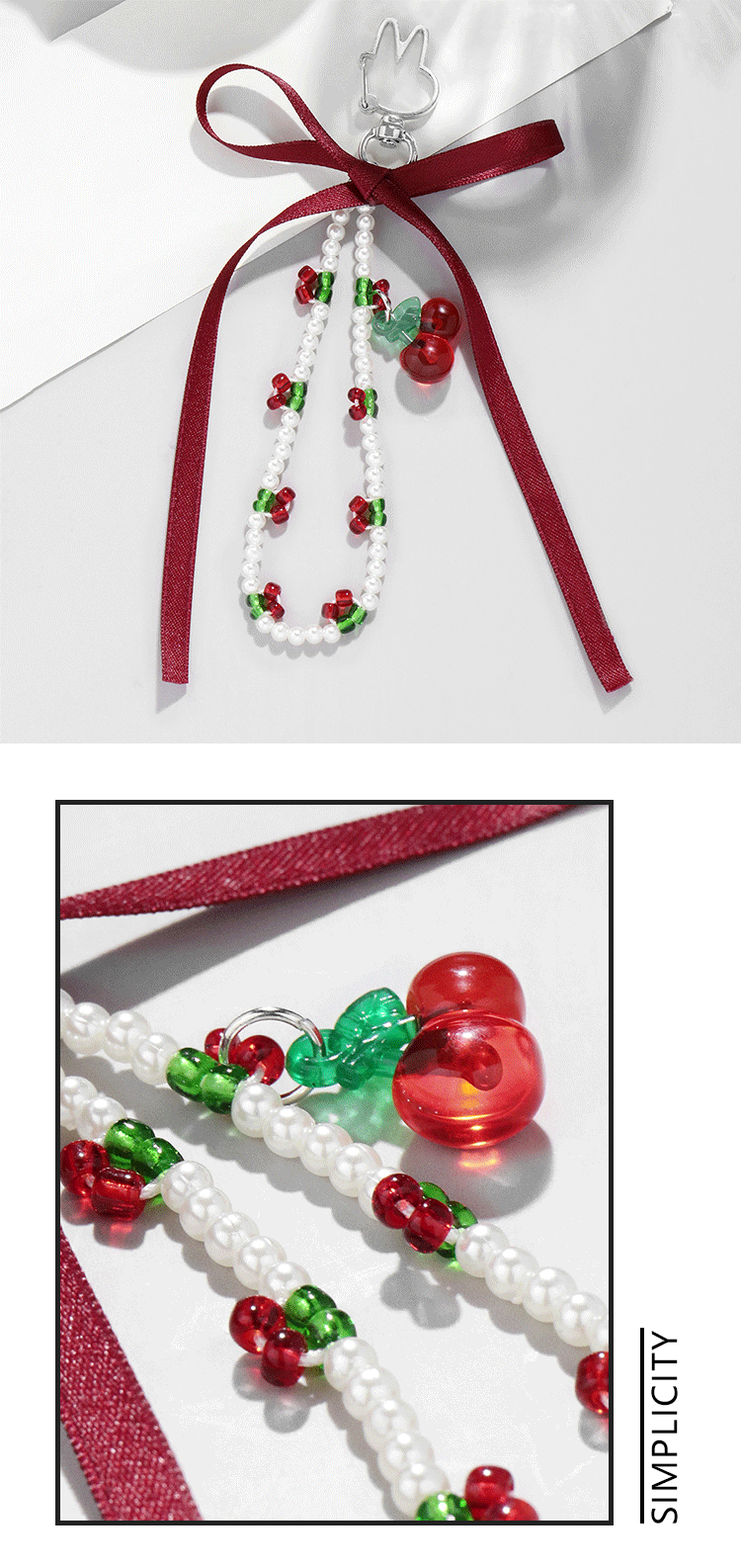 新しい y2k パーソナライズされたシンプルでハイエンドの黒と白のレースのリボン模擬チェリーペンダント DIY バッグペンダント