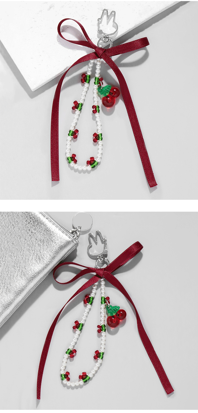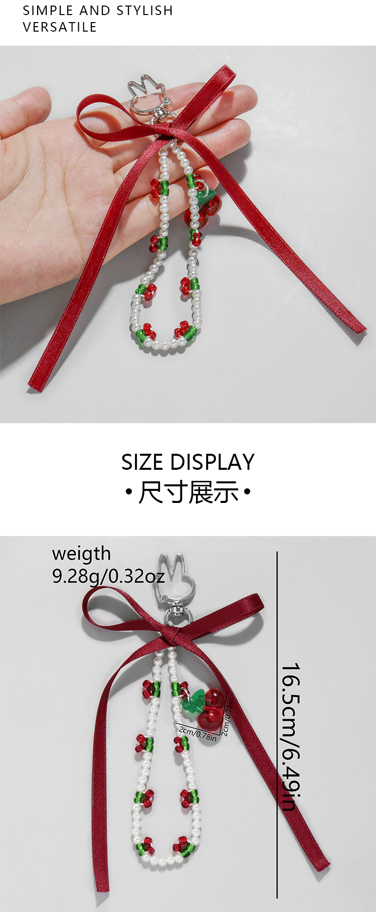 国境を越えて爆発したかわいい甘いファッションの赤いリボンのビーズの小さなさくらんぼウサギのキーホルダーのストラップ