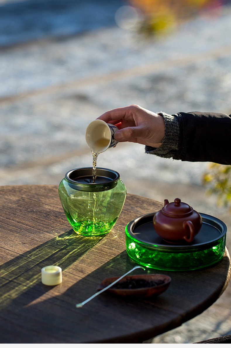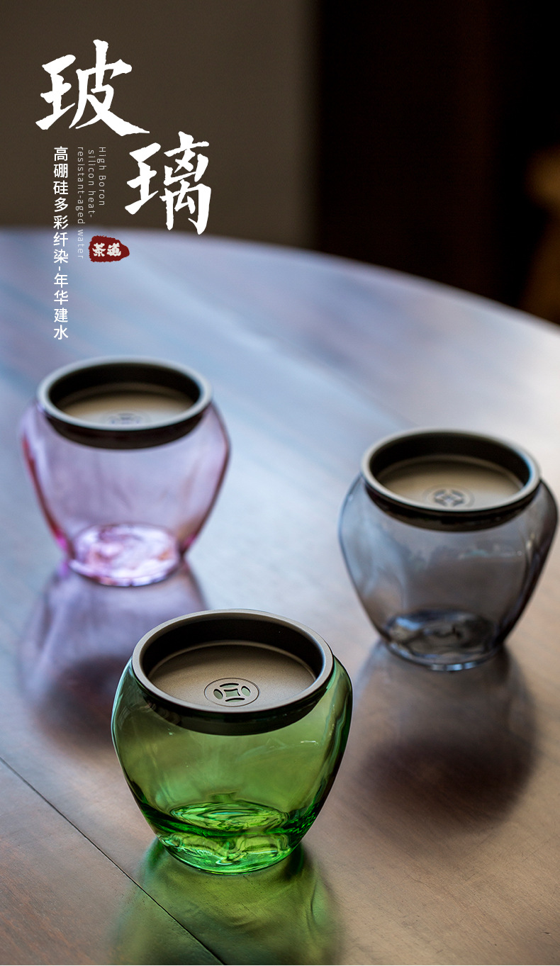 多彩なガラスのお茶は水筒を洗って家庭用のお茶のかすのかめの日本式の濾過のお茶のかすの桶の水を洗ってお茶の部品を洗います。