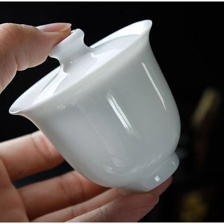 現物卸売りの白い磁器の蓋の碗の小さいサイズの羊の脂の玉の美人は碗の潮汕の工夫の茶器の茶碗をかぶせます。