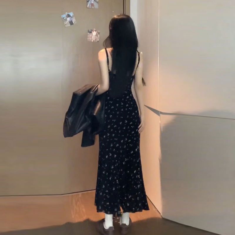 優しいフランス風砕花洋気2024夏魚尾長スカートファッション純欲風顕痩せ気質ストラップワンピース